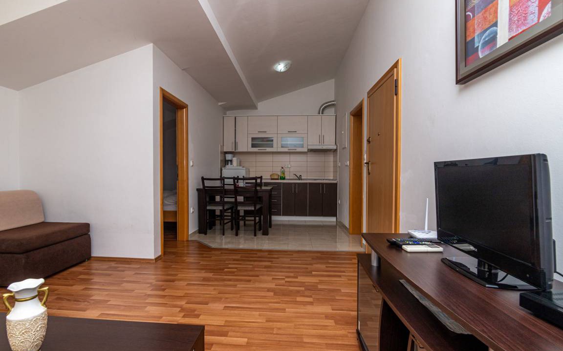 Accommodation Janja offers space up to 4 guests. The picture perfect nature and pebble and concrete slabs beaches are 20 m away. Share the photos of your well-deserved vacation using Internet available for your use. No crowds, no fixed mealtimes and no overcrowded terraces - awake your inner chef using available Grill and indulge in delicious local food. Fill your evenings with lots of laughter and fun whilst sipping local drink(s) on 8 m2 balcony. Nice little added bonus is view of Green area.
