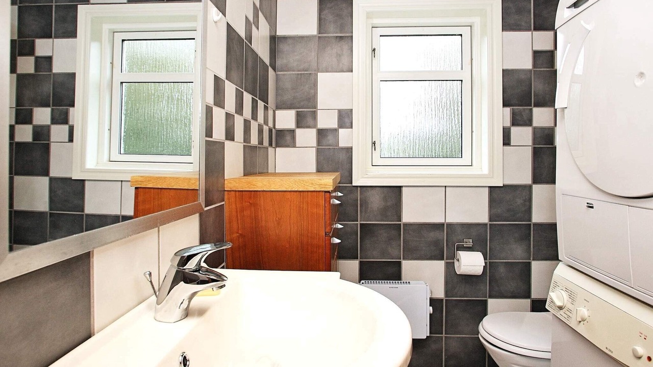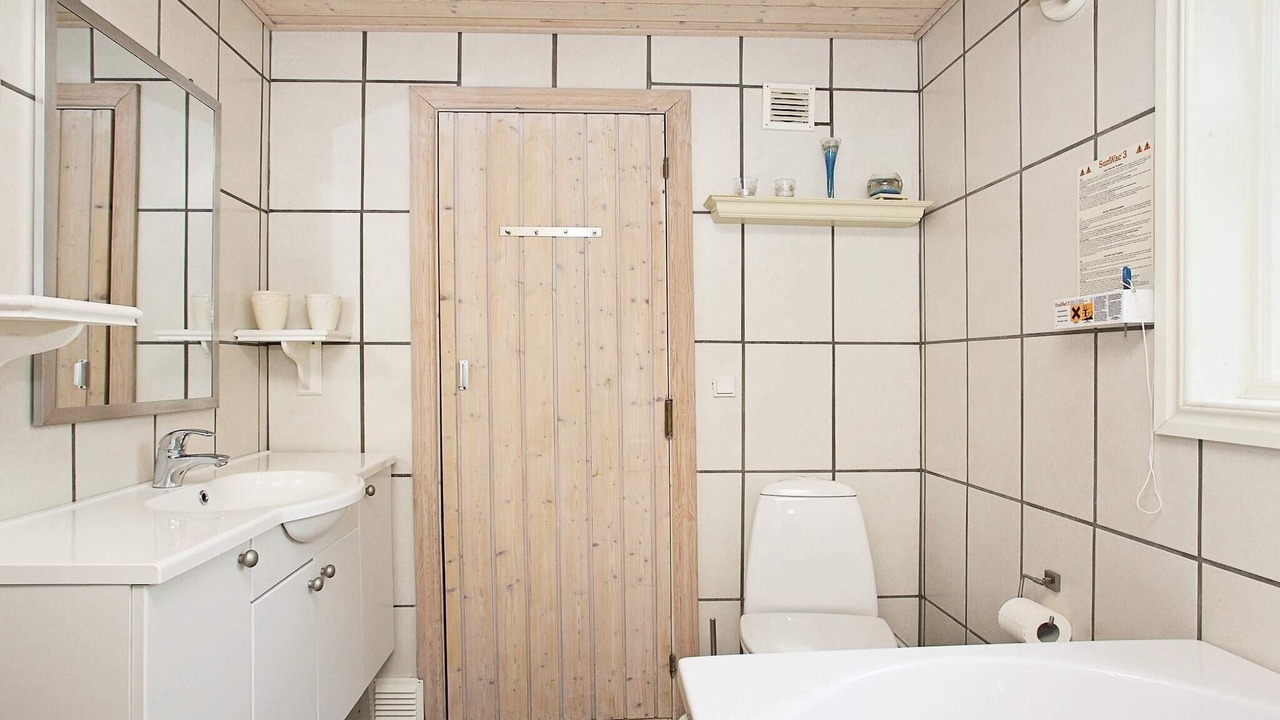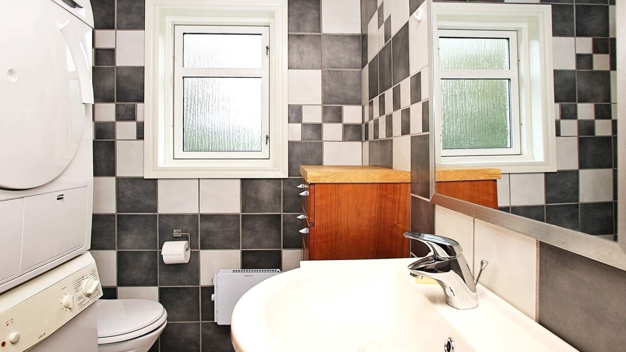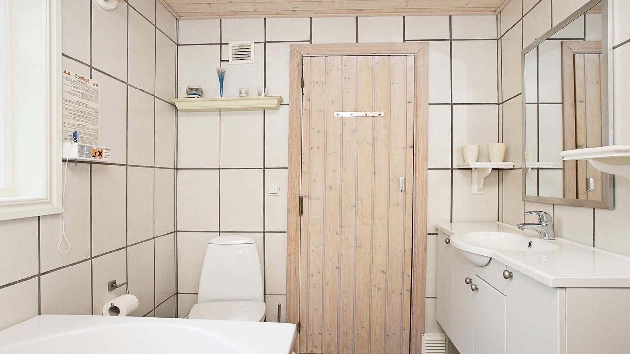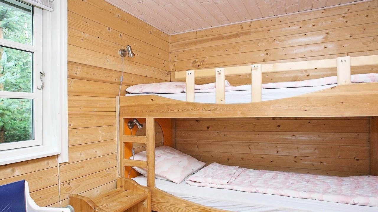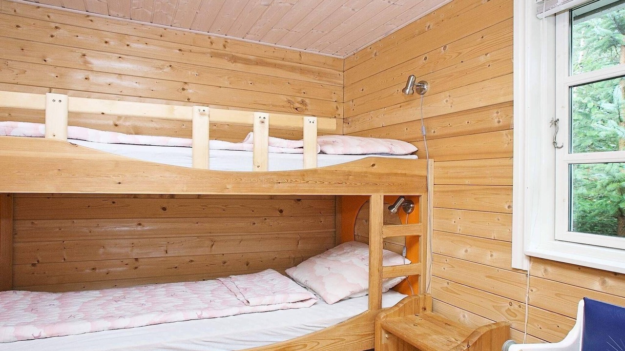 Layout: open kitchen(cooker(electric), hood, coffee machine, microwave, dishwasher, fridge-freezer, tumble dryer, washing machine), Living/bed room(TV(satellite, german television channels, danish TV channels (DR1 and TV2)), DVD player, CD player, stereo unit, high chair), bedroom(double bed, children's bed), bedroom(double bed), bedroom(single bed, 2x bunk bed), bathroom(floor heating)(bathtub or shower, washbasin, toilet), bathroom(washbasin, toilet), mezzanine(2x single folding bed), Bubble bath(indoor, heated, 2 persons), sauna(indoor, heated, 3 persons), heating(electric), terrace, play equipment