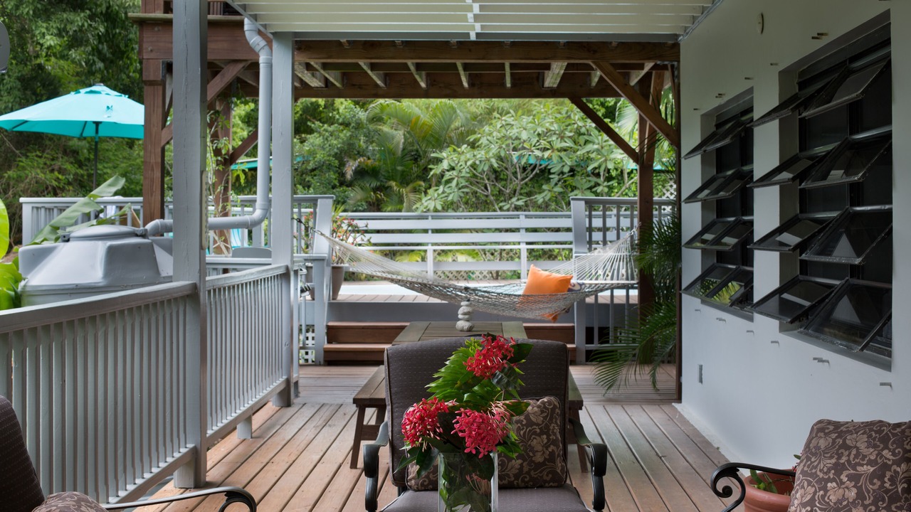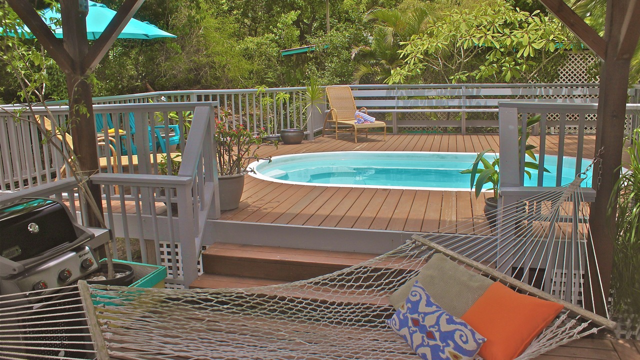 Starlit Escape is an immaculate 1 bedroom 1 bath rental villa with a pool nestled in a private, forested valley on St. John's unspoiled east side. Surrounded by tropical gardens, fruit trees and wildlife, this villa offers the full Island experience. Conveniently located to all that is St John; the palm guarded white sand beaches, the Virgin Islands National Park, the many restaurants and bars, sailing, hiking, shopping and just plain relaxing await. Family owned and managed, the aptly named Starlit Escape is known for its seclusion, peacefulness and natural beauty. No detail has been left out and the owners are always accessible for any need. Air conditioned bedroom, private pool, washer and dryer, WIFI, covered decks, full kitchen, free calls to the USA, cable TV with Showtime. All amenities are included or will be provided upon request. Starlit Escape accommodates up to 4 guests, making it ideal for couples getaways, or families with small children.