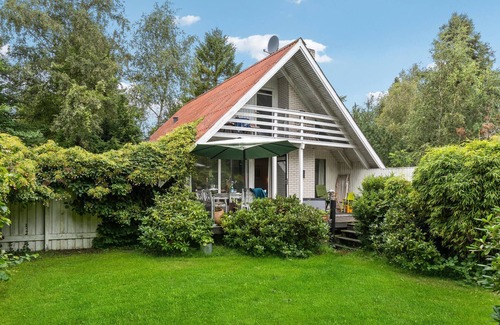 Wonderful, bright NOVASOL vacation home with a partially open kitchen to the living and dining room with fireplace. From there you can step out onto the partially covered terrace. In addition, the house has a bathroom with shower and underfloor heating, a bedroom on the first floor and two bedrooms upstairs, one with direct access to the balcony. The house is situated on a 1200 m² undisturbed plot with flowers, bushes and old trees, as well as a large lawn where your children can play excellently.