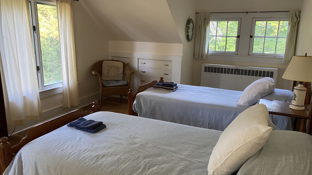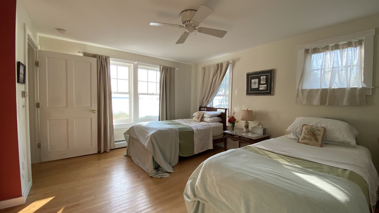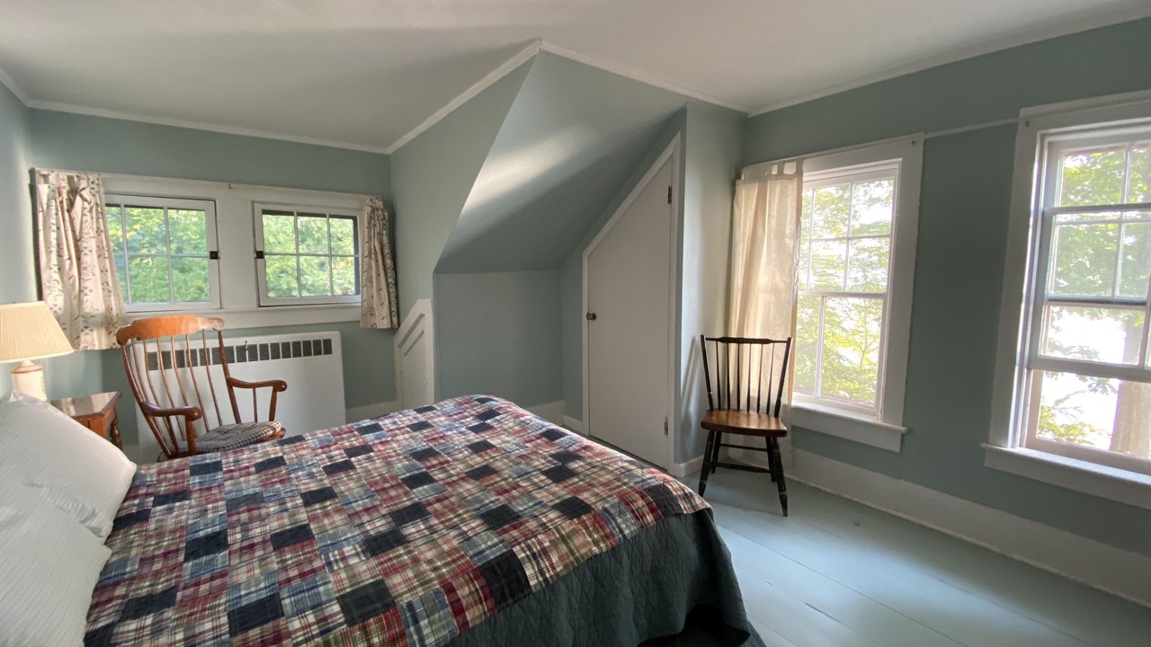 The house, with 5 bedrooms, two full baths and a large private sandy beach is a 5 minute walk from the center of Westport. The downstairs plan has an open living/dining room with a fireplace, a wood panelled library, well-equipped kitchen, and a large eating porch overlooking the lake. The entire ground floor is handicapped accessible with one bedroom and full bath/accessible shower. Upstairs there are four bedrooms and a full bath.