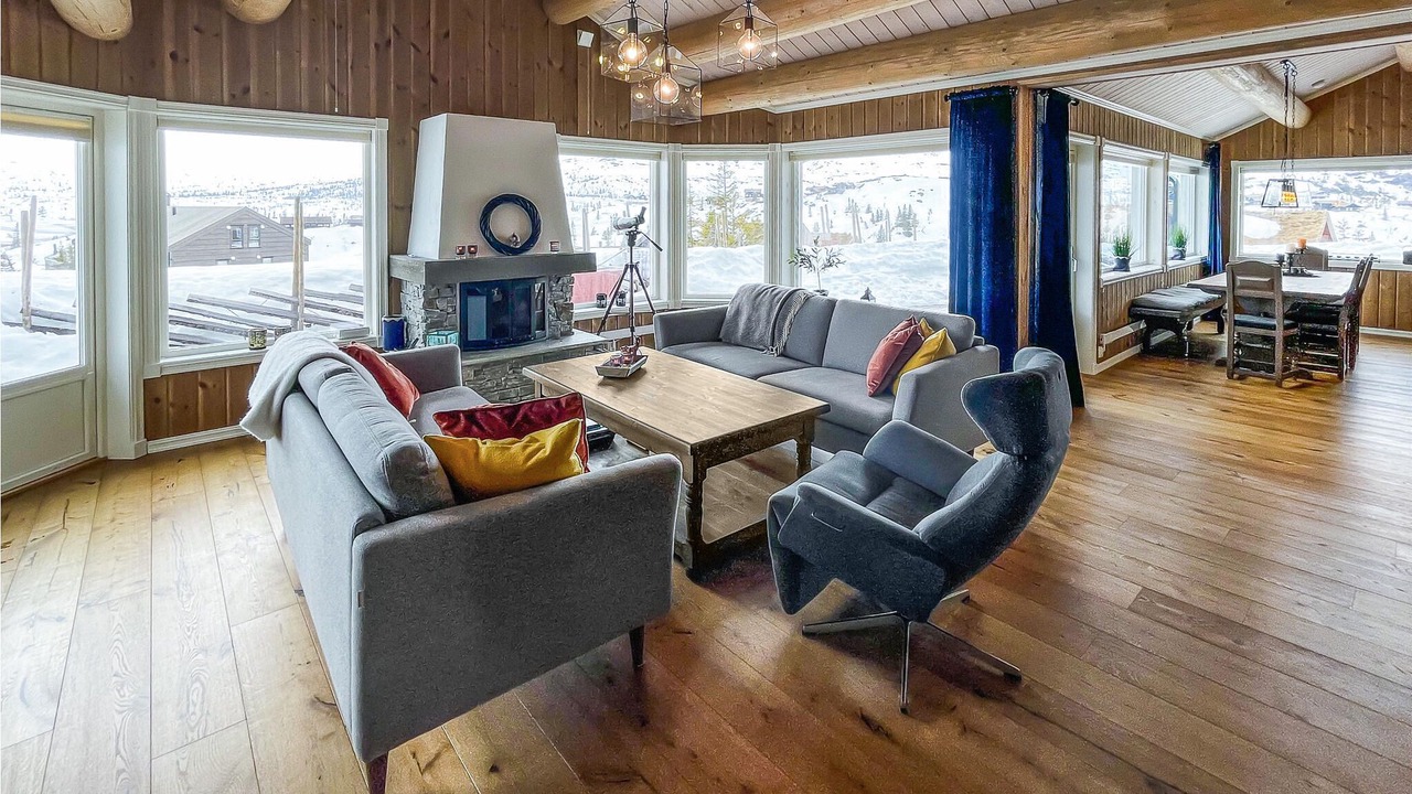 This charming holiday home offers you an ideal break in the midst of unspoilt nature. With its idyllic location by Lake Litjernan and close to Högevarde Fjellpark, it is an ideal place for those seeking relaxation and active holidaymakers alike. The tastefully furnished house impresses with its large panoramic windows, which create a light-flooded and friendly atmosphere. The open-plan living area invites you to relax with cosy sofas and a wood-burning stove, while the fully equipped kitchen offers good conditions for culinary experiences. Prepare a delicious breakfast with homemade waffles and enjoy meals at the large dining table with a wonderful view of nature.