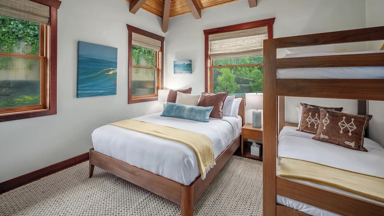 - Downstairs guest room with Queen Bed and bunk bed with 2 twin beds