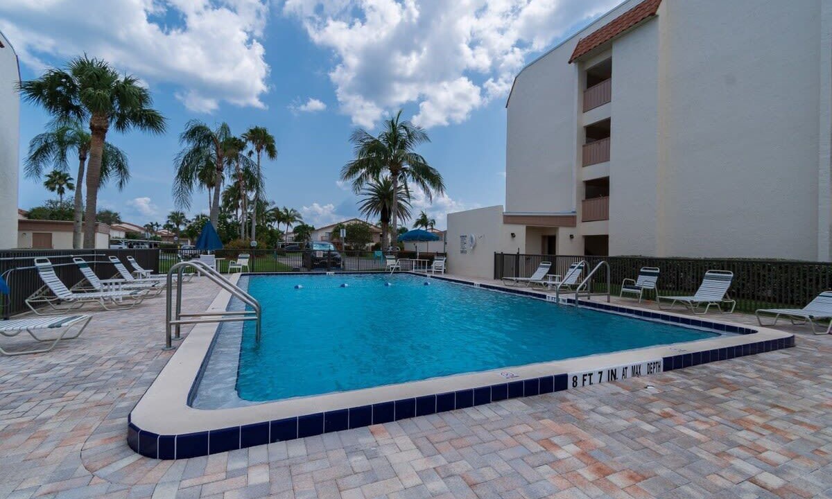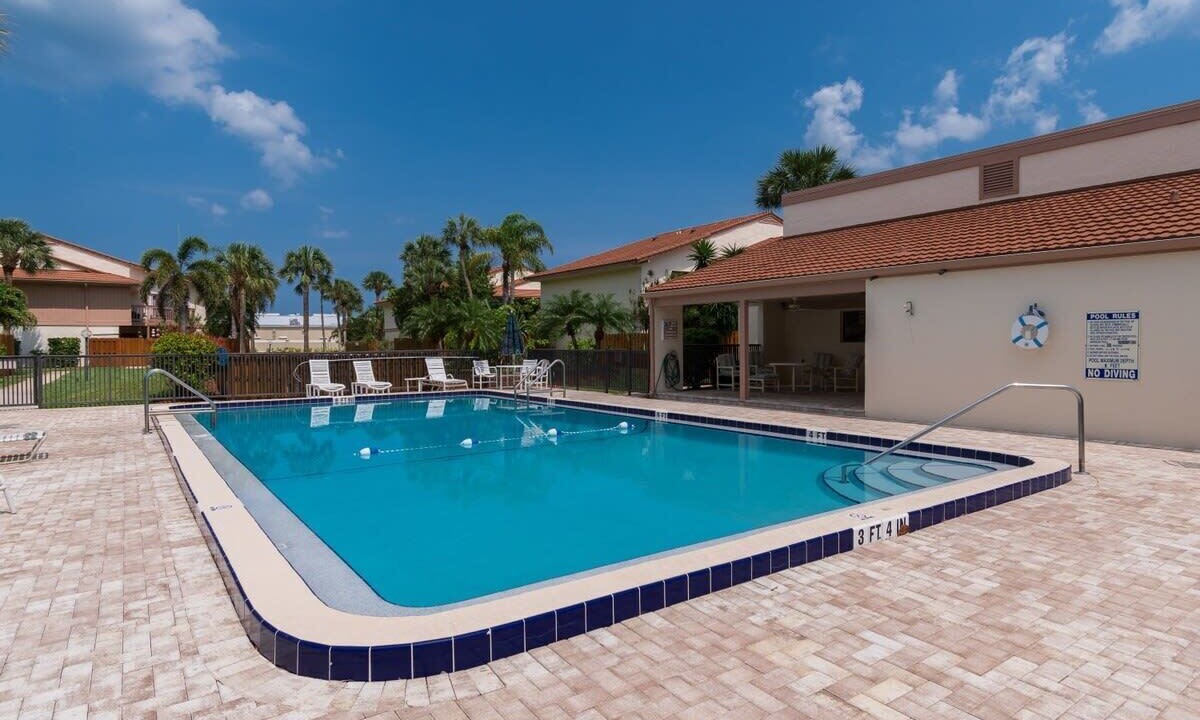 Step outside to your private patio and balcony, spaces that truly enhance your vacation experience. Spend leisurely evenings gazing at Florida's mesmerizing sunsets, sipping your favorite beverage as the sky transforms into a canvas of vibrant hues. The gentle ocean breeze will rejuvenate your senses, making it an ideal spot for unwinding. The property also boasts two inviting pools and access to a clubhouse for social gatherings, while a fishing dock offers an opportunity for leisurely afternoons by the water.