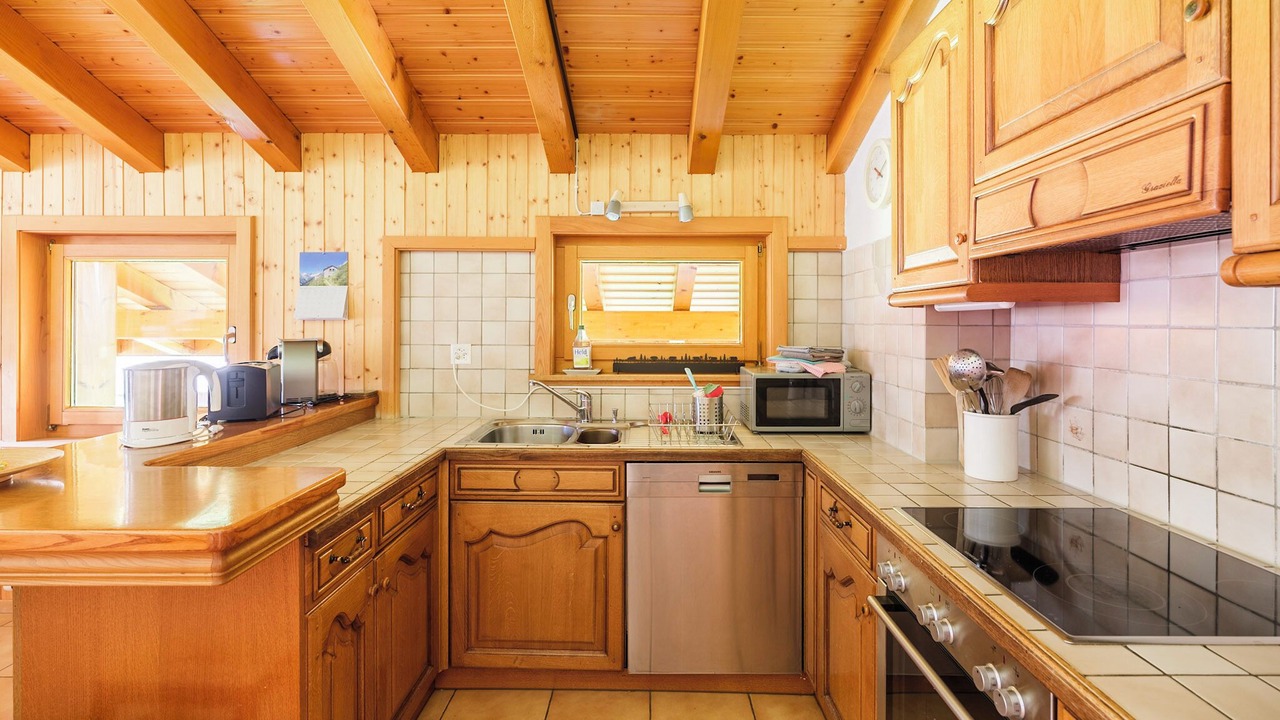 Large family room with very well equipped open kitchen, south/southwest balcony, peaceful. Well located at 10 minutes walk from the village center and near the ski slopes and many hiking trails. Suitable for families with children, games and books available, high chair and child chair, cot available on demand. Laundry and sauna in the chalet. For large groups, it is possible to rent the apartments Le Grand Chamois and Le Petit Chamois in the same chalet at the same time.