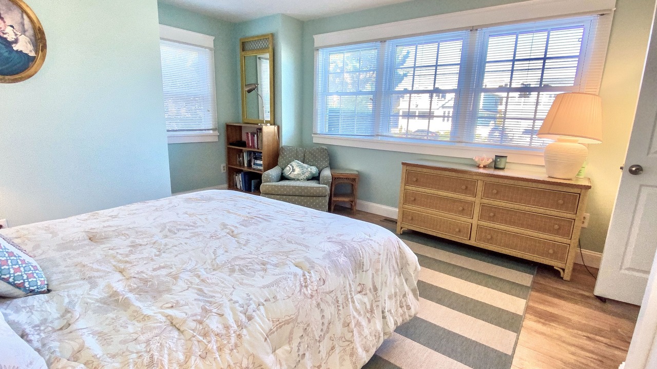 Amazing old world Avalon meets new world! When all the picturesque Avalon homes have been replaced, the rare find still stands and welcomes you! This 6 Bedroom, 4 Full Bath Bayfront home has so much to offer. From the shady front porch to the sandy beach, there is a place for everyone in the family to relax and enjoy. Enjoy the generous seating and tables for so much outdoor playtime along with two boat docking areas from the end of the catwalk. A comfy gameroom to watch TV, play a board game or a quiet reading nook while sipping coffee and enjoying the bayviews. The Master Suite is spacious and has it's own quiet seating area for lounging before the day starts or before it ends. There are no lack of views from the first floor or the second. The Master Suite has a private deck area both shaded and open for sun bathing. On the first floor you will find the common areas, as well as a full hall bath with shower. There are two Queen rooms with a Jack n Jill bathroom. The second floor offers the Master Suite with Private Bathroom, and a room with a Queen bed, a room with 2 twins side by side, a room with 2 bunkbeds (4 twin beds) and a full Hall Bath with Tub. The driveway can easily fit 3 cars in tandem. Don't forget the outside shower for quick cleanups after a long day at the beach. Launch kayaks (3 supplied), paddle boards or a boat from the bayside of the home from the private sandy beach - how fun for the kids! All this and only 3 blocks to 40th Street beaches, some of the finest on the East Coast. A short bike ride or walk to Avalon's fine business district for ice cream, dining, mini golf, shopping and more.