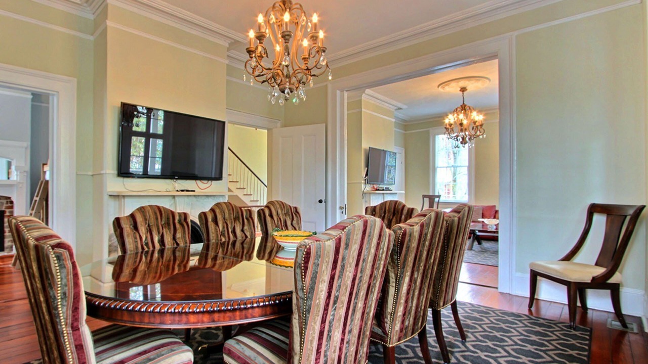 Modern, eclectic, lavish, luxurious - those are just a few words that could be used to describe this unique and newly renovated, Southern home located just two blocks from Forsyth Park. The beautiful Savannah vacation rental features 8 bedrooms, 8 baths. It sleeps a whopping 22 guests in gigantic bedrooms! The Savannah vacation rental is perfect for your large family gathering, wedding groups, family, and friends. There`s a garden level, main house, and carriage house with a large courtyard connecting the two properties which offer several large porches for catching an evening sunset while sipping sweet Southern tea. This lovely estate was just renovated & opened September 2012. Guests will enjoy brand-new appliances as well as beautiful, modern decor throughout the property.