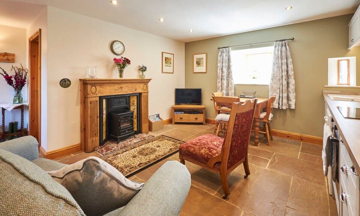 Sharing the living area is the kitchen. Shaker in style, this wonderful cosy space has everything you could need for your stay, including a dishwasher, oven, fridge, kettle, microwave and toaster. There is even a washing machine so you can keep on top of your laundry during your stay!