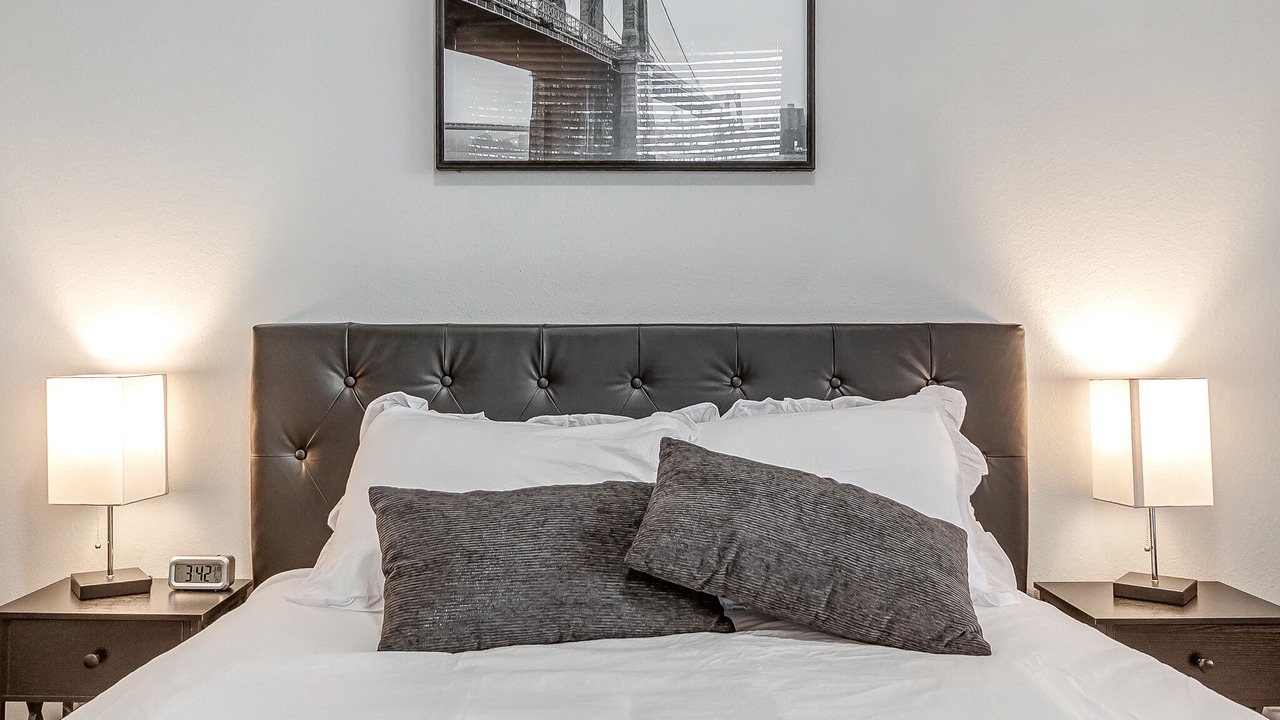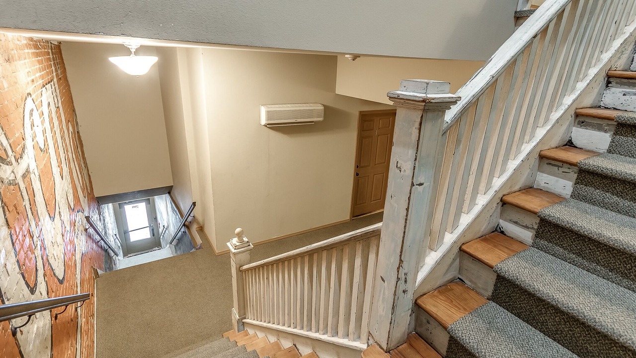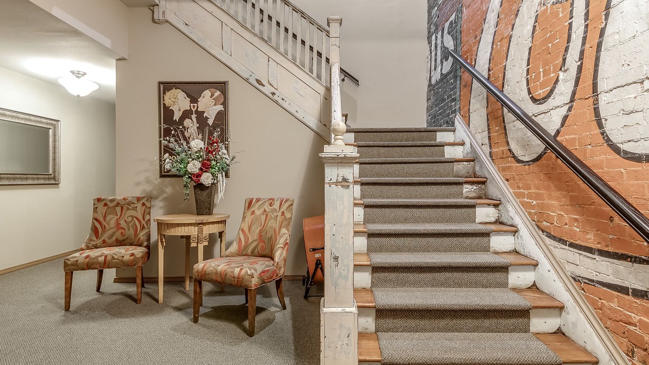Enjoy the elegance of the vintage brick walls while staying in this vintage deco home with original corridors and stairways. Stunningly including the original 1900’s Coca-Cola mural original to the buildings history. This Beautifully decorated loft features large casement windows, new caramel warm shade furniture with depths of black tonality furniture and accents. The decor is a stunningly unique mix of current and historical styles.