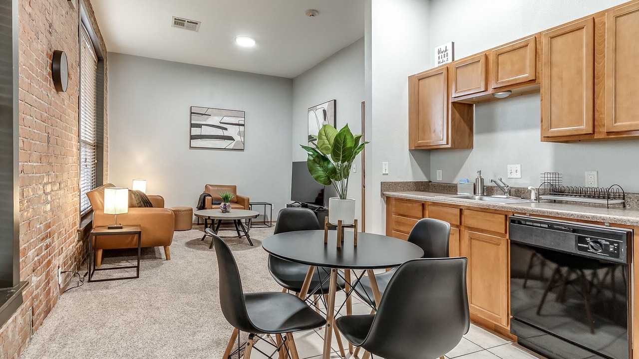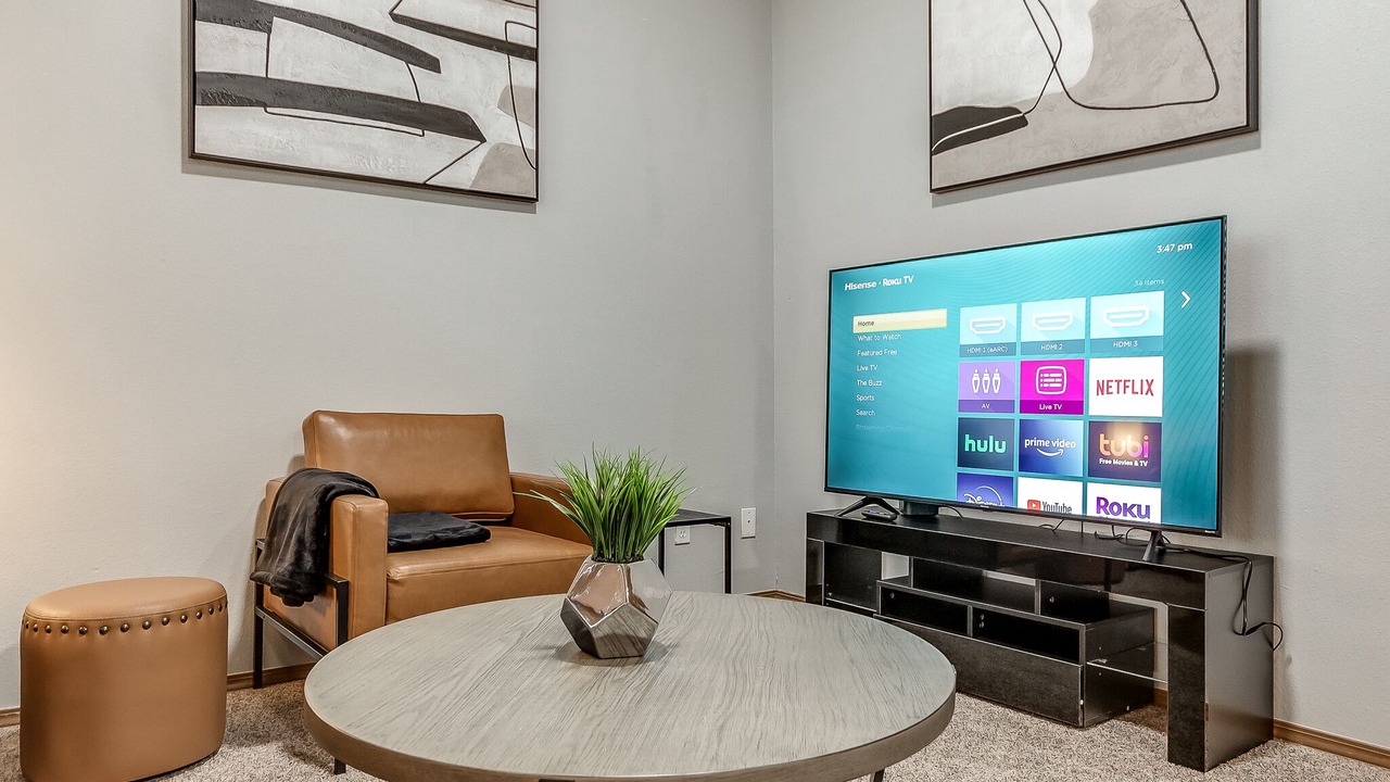 Have a great experience with our brand new 58” Living room Tv with smart apps, 43” Bedroom Tv with smart apps, dishwasher, stove/pans, cups and plates, coffee maker, clock, great Wi-Fi, microwave oven, fridge, games, central AC/ Heat and much more! The loft is located on the third floor, access via staircase with great view to downtown Bartlesville and a short distance walk to some of the best places in town like: