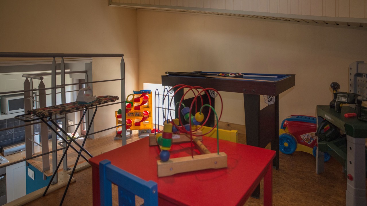 It is a paradise for children thanks to the mezzanine with games, swings with slide or simply the lawn.