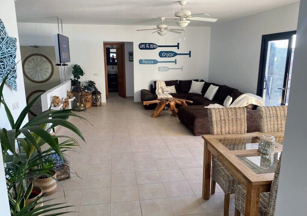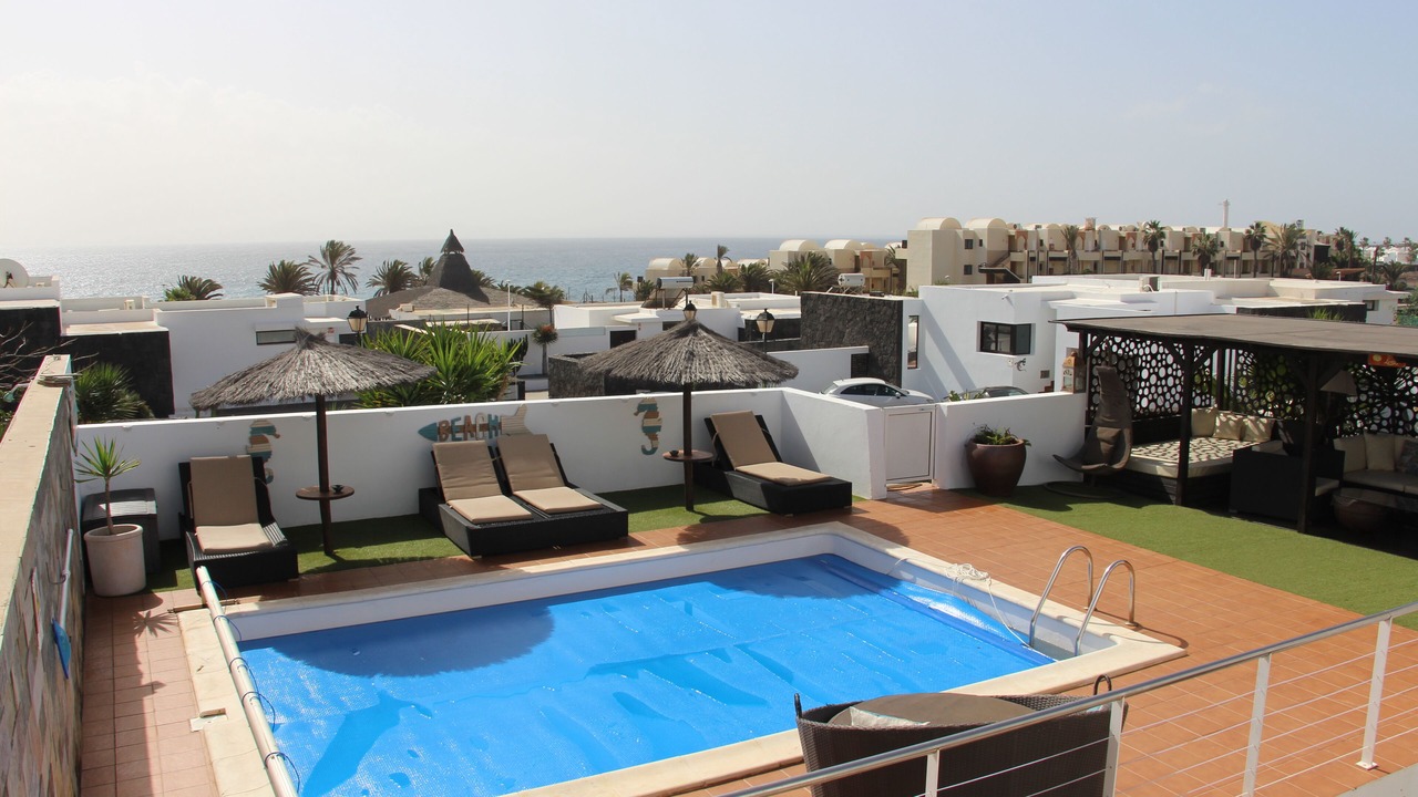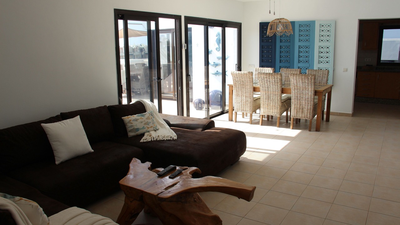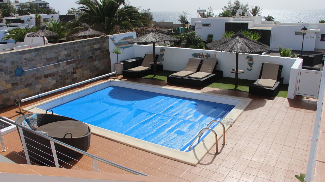 Sun, sea and spectacular views - what more could you wish for. Well, there is a heated pool, multiple patios and balconies, enormous inside space and stylish furnishings. All this within 2 minutes walk to the beach and 10 minutes walk to restaurants and bars. Playa Vista offers the perfect holiday destination. With fantastic 180 degree views of the sea and Fuerteventura, the balconies and patios catch the sun all day long. As an added bonus, the downstairs patio is completely enclosed, offering complete privacy, shelter and table tennis/games area. The entire property is furnished and decorated to a very high standard with a gym/games room including Nintendo Wii, running machine, multi gym and outside table tennis and darts.