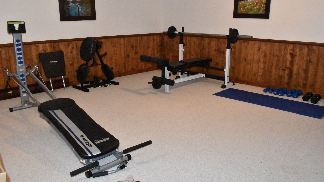The lower level offers 2 queen rooms, a full bath, Living room, bar and pool table along with a work out room and stone fire place.