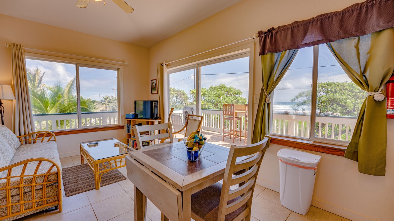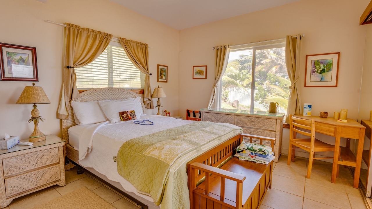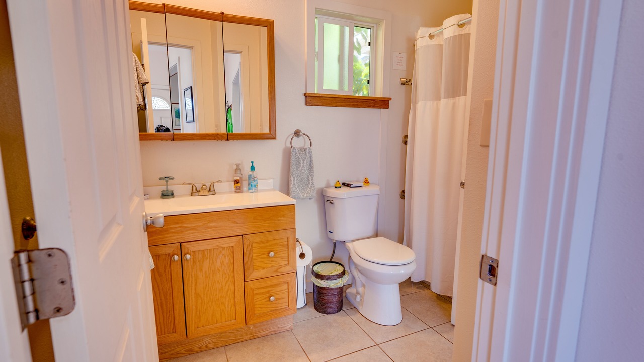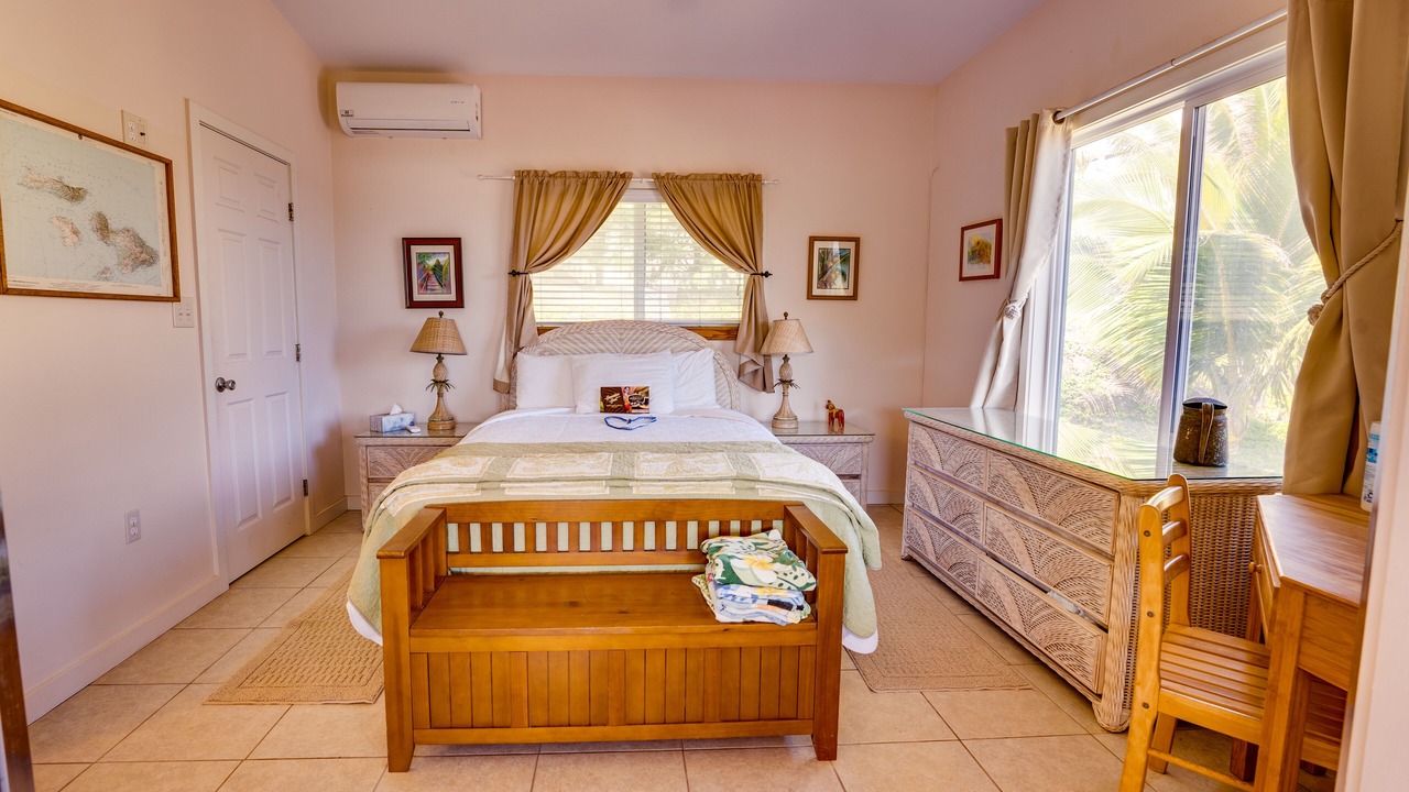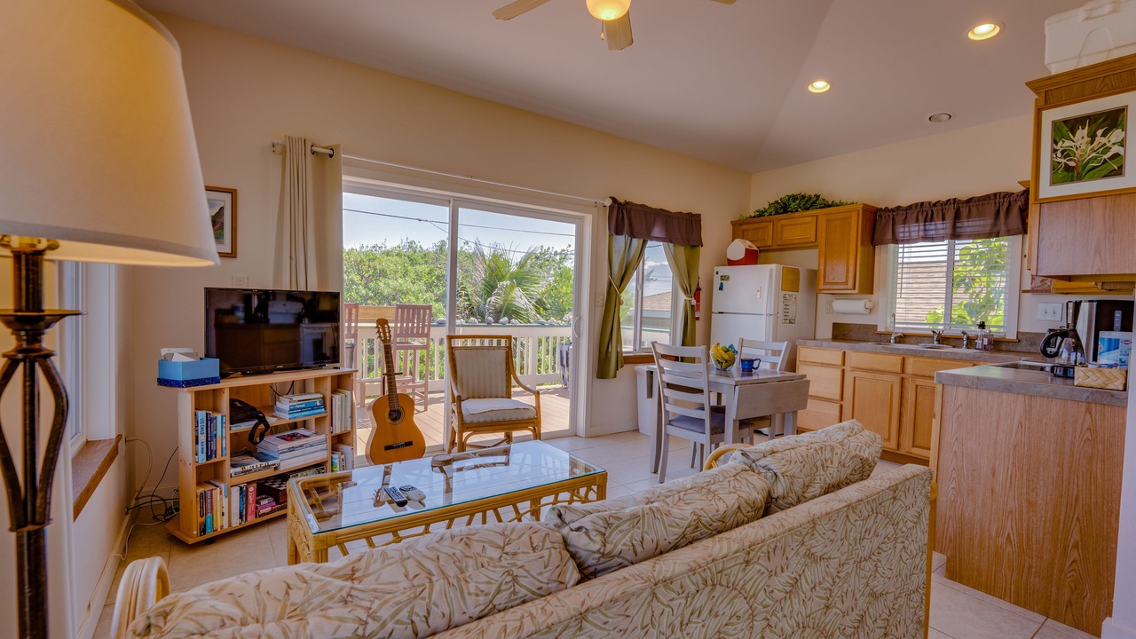 Separate bedroom and bathroom has 2 doors so there is privacy if one person wants to sleep and the other stay up or get up. Plenty of room for two or for a family with a child who can sleep in a crib (available to rent from No Ka Oi Baby Rentals) or on the couch.