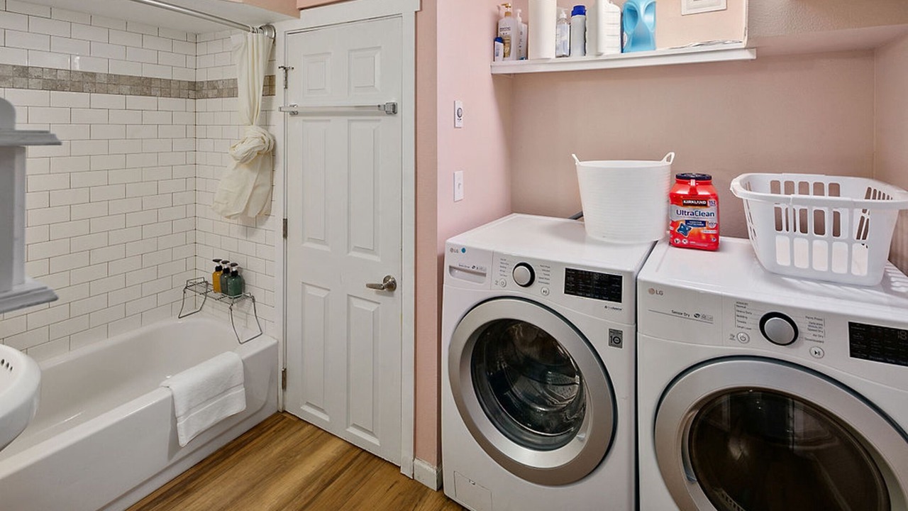 • Kitchen is stocked with a stove, cookware, silverware, toaster, keurig coffee & tea, airfryer, slow cooker, and more!