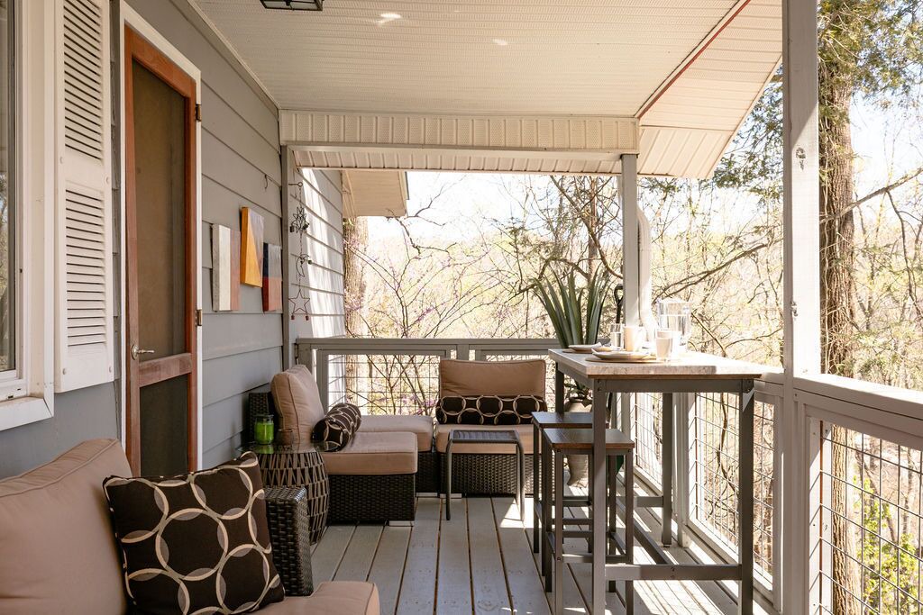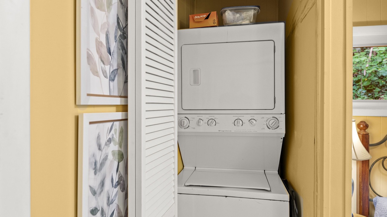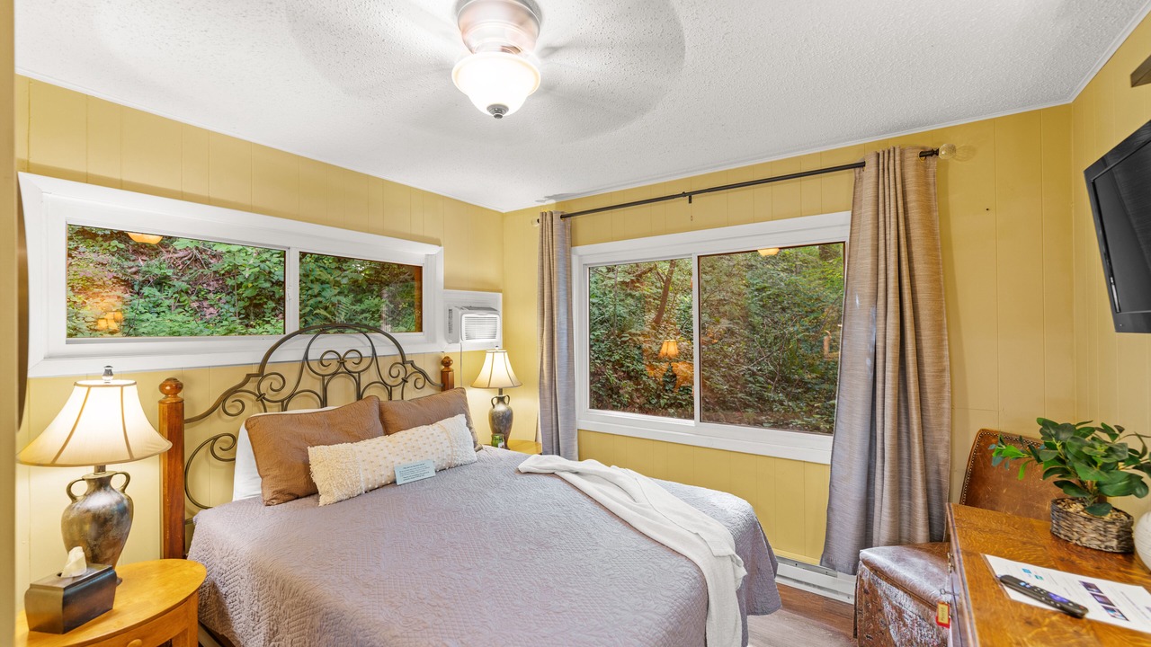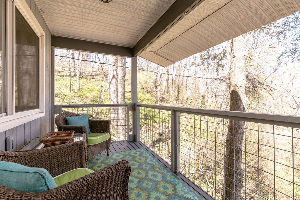 The Upper Berne Chalet has the location you want when visiting Asheville, with the feeling of being far away from it all on a hillside, yet literally a 3 minute drive to downtown Asheville. There are two spacious bedrooms (1 king and 1 queen bed) and one bathroom. The Upper Berne features a 75" smart TV with Roku loaded with Spectrum's new streaming app offering up to 250 live channels in the living room. Both bedrooms have smart TVs with Roku as well. Included is free Wi-Fi service with high-speed internet. The kitchen is fully stocked with coffee, tea, condiments, spices, pots & pans, dishes and utensils and more. A washer/dryer is in the queen bedroom closet.