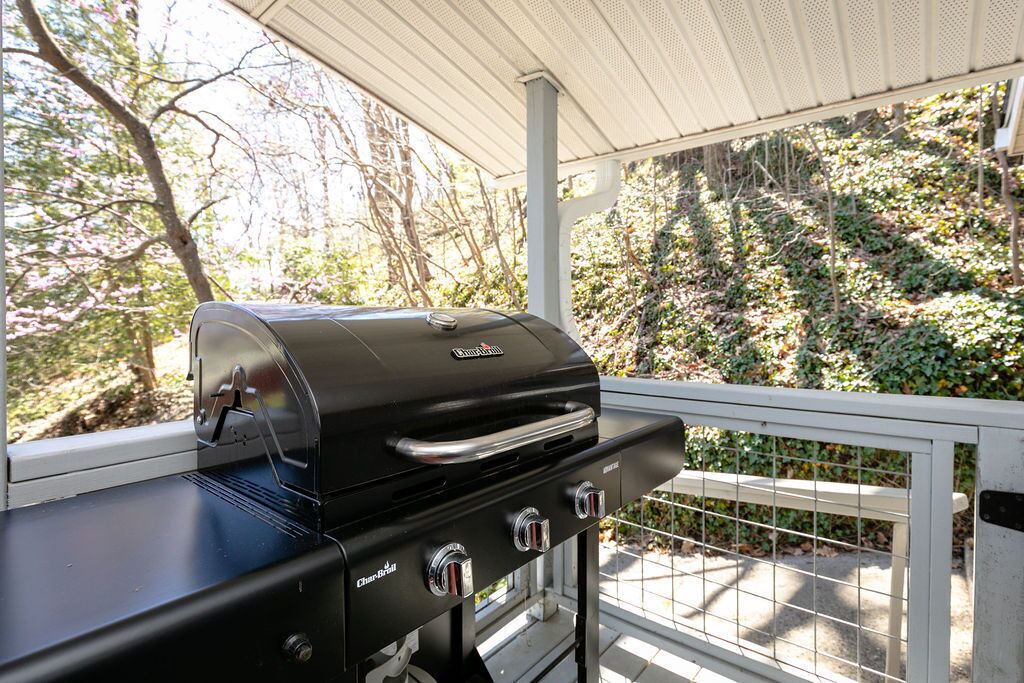 A large front porch features a gas grill, table and chairs and sitting area as well as an additional side porch add to a tree house feel. Perfect for enjoying your morning coffee while watching the sun rise over the mountains. We supply all linens, towels and robes.