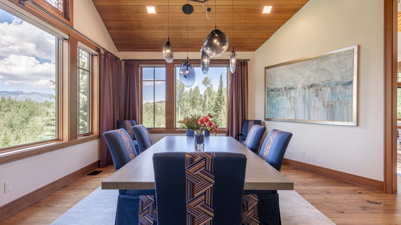 Stunning Grand Teton Views. Recently updated retreat perfectly located in the center of Jackson Hole. Chef’s kitchen. Large dining room, Great room, office, party den with bar area, shuffleboard, large screen television. Large custom spa with Teton views. Easy access to the town of Jackson, Wilson, Teton Village. Grand Teton & Yellowstone National Parks. Ski, Golf, Fish, Hunt, Hiking, Horseback riding, Shopping, Dining. Gated community with large home nestled in an aspen grove with postcard views of the Grand Teton mountain range. Privacy and seclusion of 5 acres bordering 80 acres of open space. Immerse yourself in the beauty of Jackson Hole.