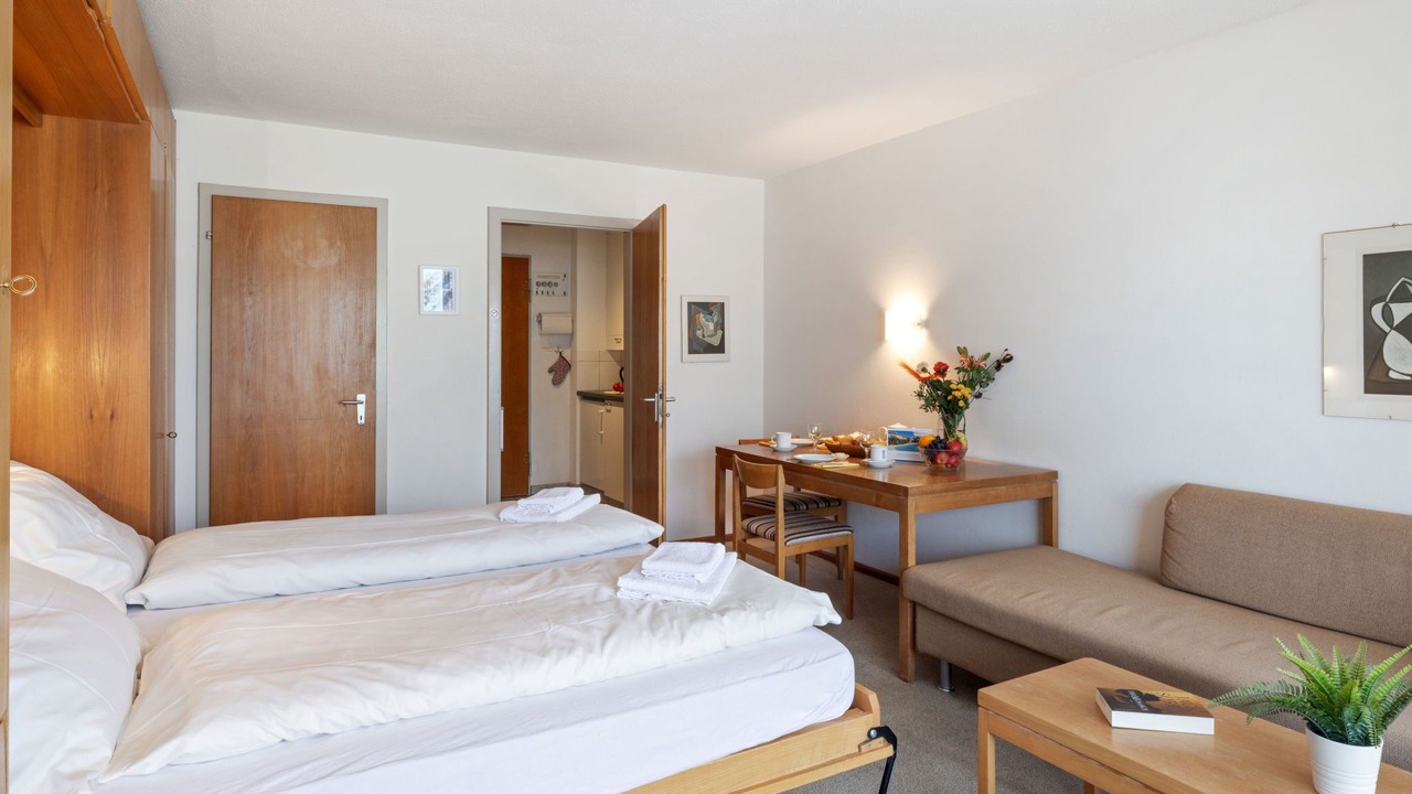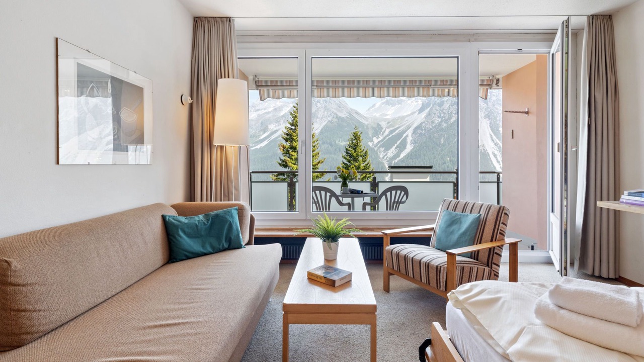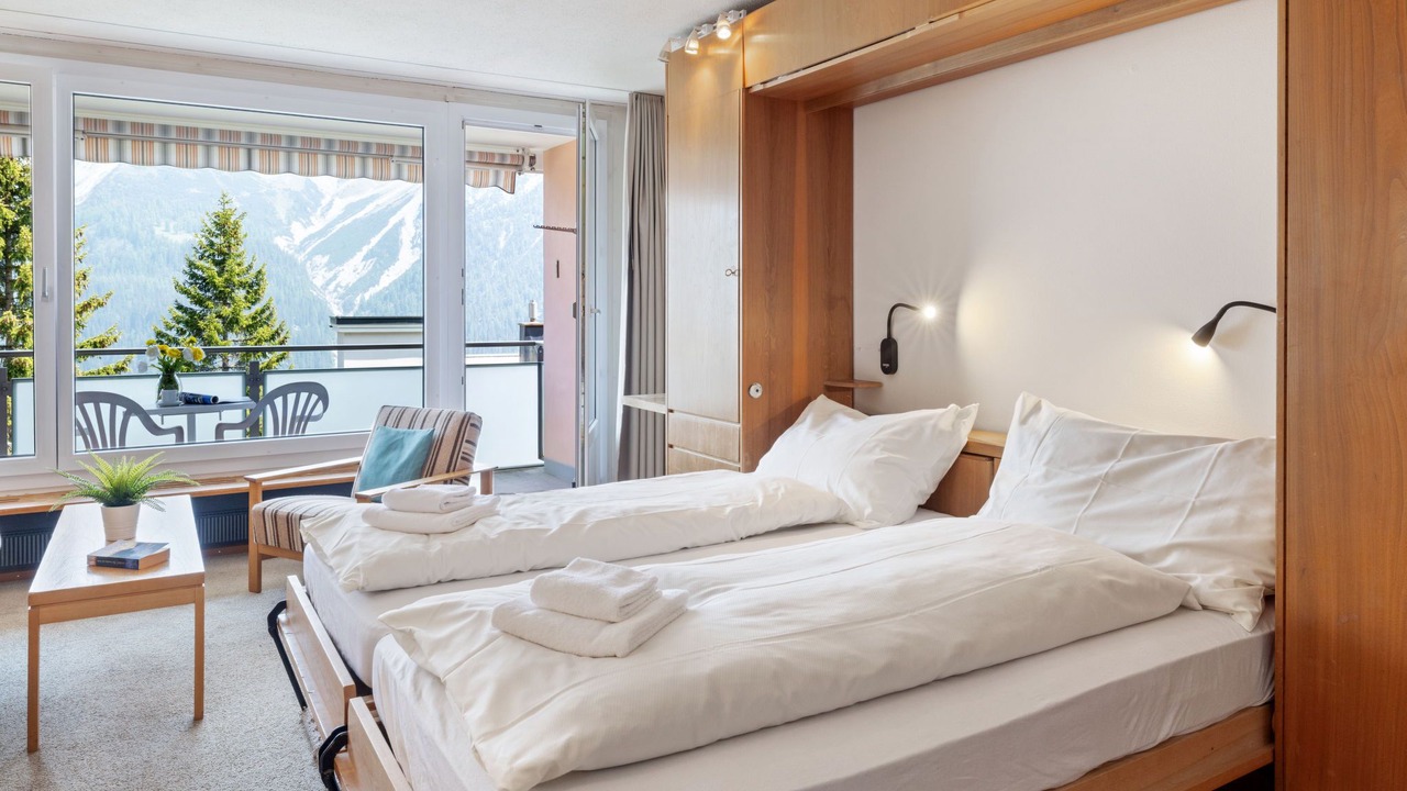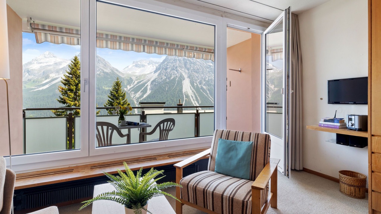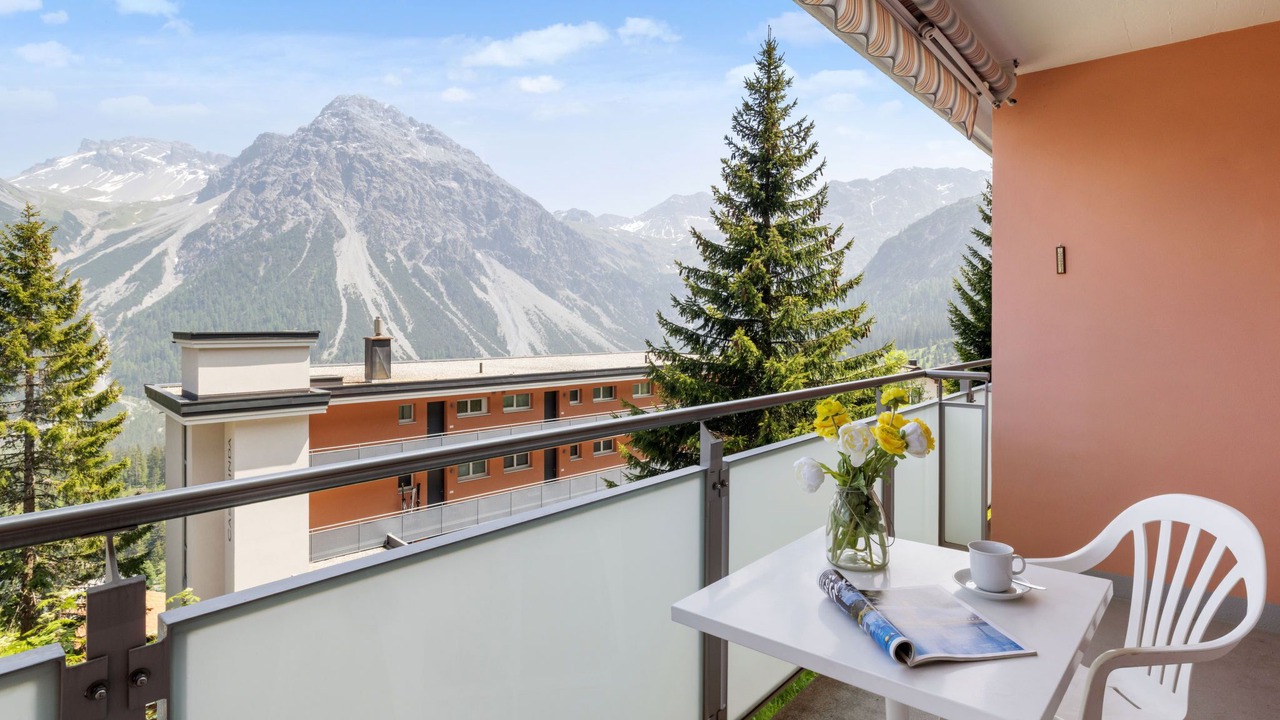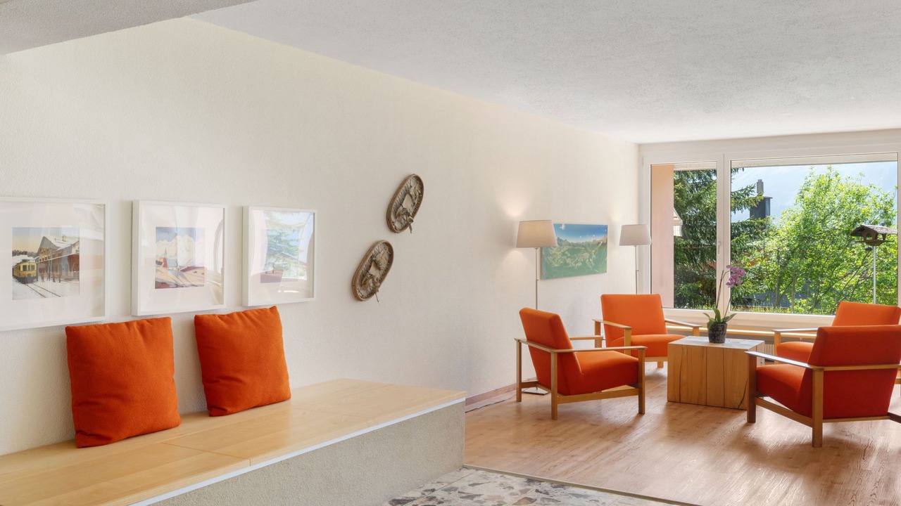 Apartment block "Promenade (Utoring)". In the resort, 500 m from the centre, in a quiet position. In the house: lounge, table tennis, kiosk, lift, storage room for skis, central heating system, washing machine (for shared use). Motor access to the house (mountain road). In Winter: please take snow chains, 4x4 car recommended in winter. Parking (limited number of spaces, extra) at the house, communal covered parking (extra), public car park at 800 m. Shop 500 m, bus stop "Arosa, Rathaus" 400 m, railway station "Arosa" 1 km. Skisport facilities, slopes, sled run 500 m. Home delivery service possible. Beautiful hiking trails right in front of the house. Attention: limited number of parking spaces! Parking space or garage space must be reserved in advance with the key holder: parking space CHF 5.00/day, covered parking space CHF 8.00/day, garage space CHF 16.00/day, payable on site. Lounge with internet connection (WiFi). Ski passes are available at reception.