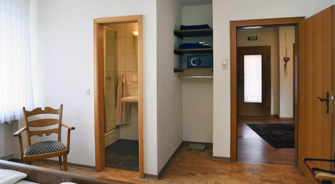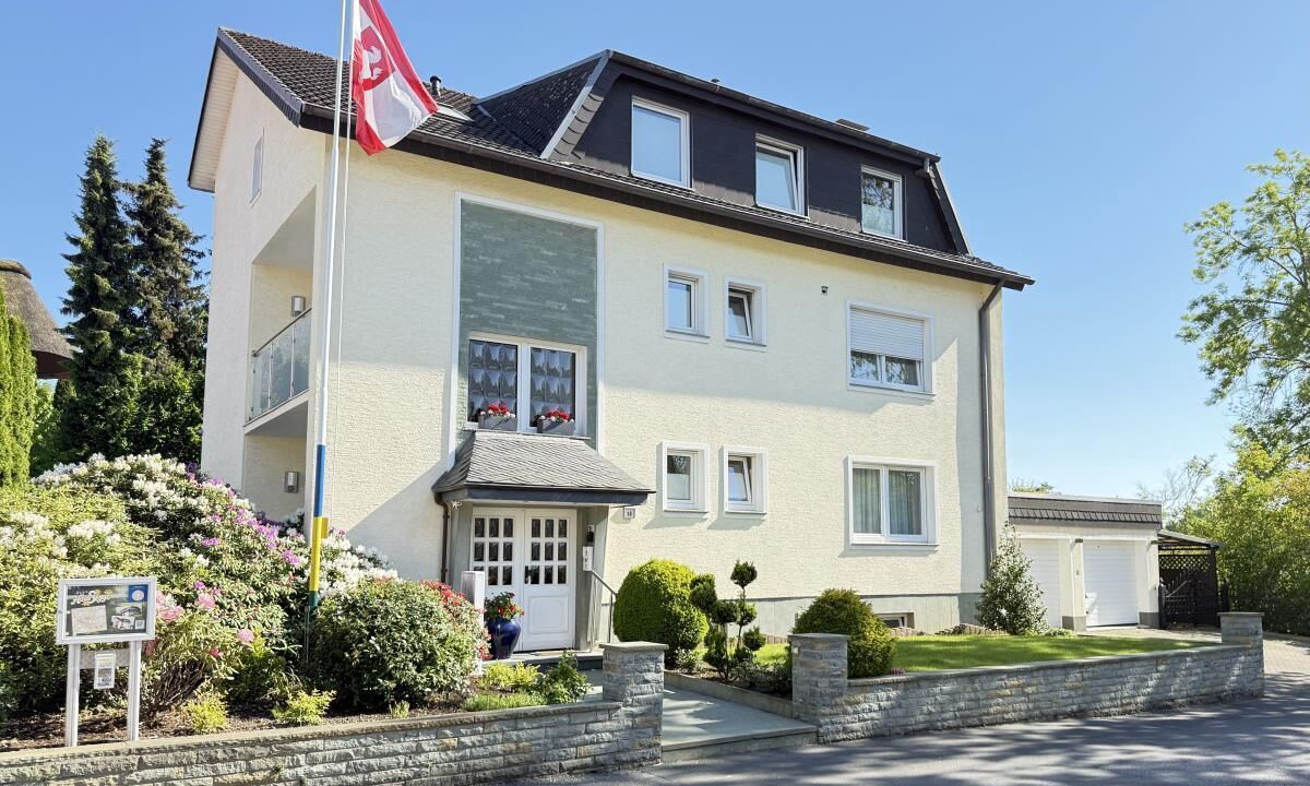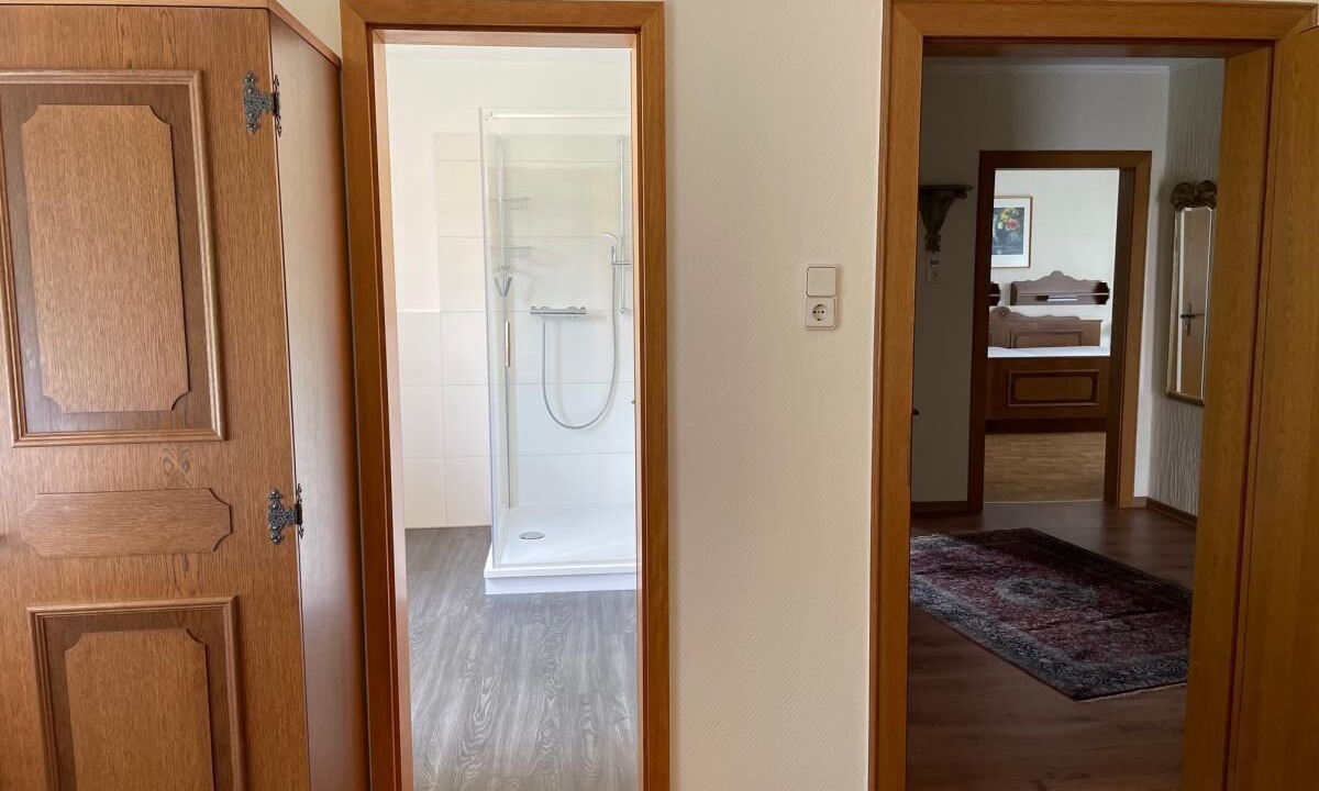 The apartment has an overbuilt balcony in south / east orientation and is located in the quietest of Bad Sassendorf, right in the center, with a dream view of the Westphalian countryside. The apartment will fascinate you - the idyllic footpath on the lovely Rosenau will bring you in 5 min. at the historic farm Haulle / cultural barn (200m) over in the center. The beautiful apartment consists of 3 or 4 rooms, kitchen and shower / WC, bathroom and hallway. For the 3 and 4 person another bedroom with shower / WC is available from the room.
