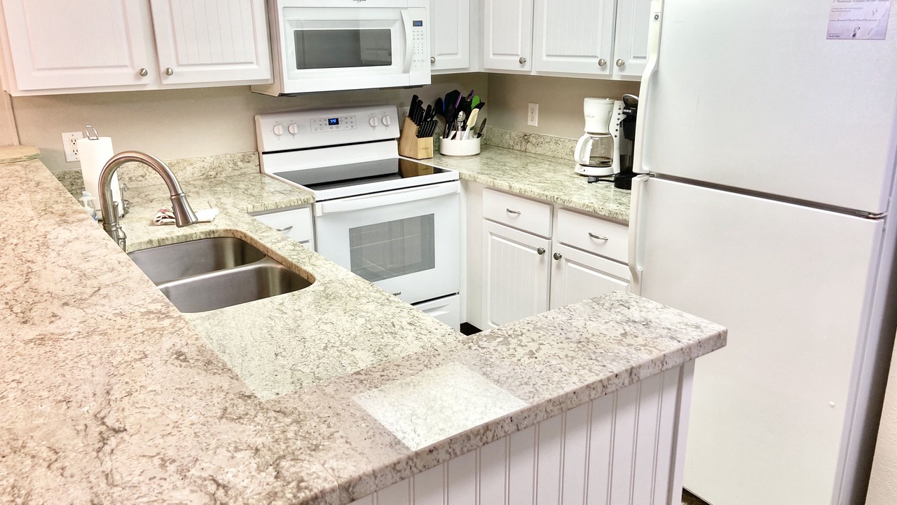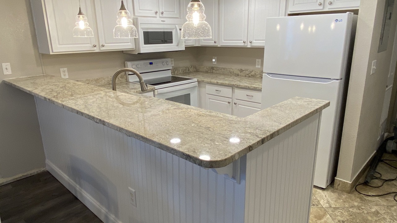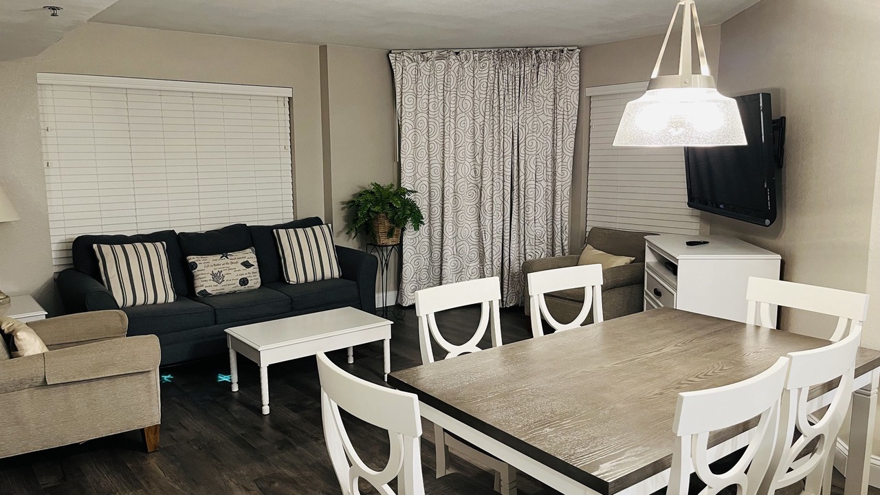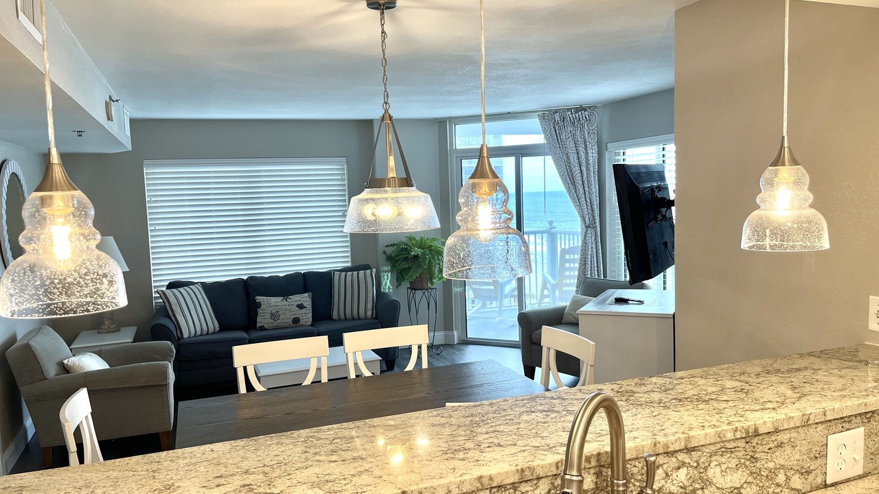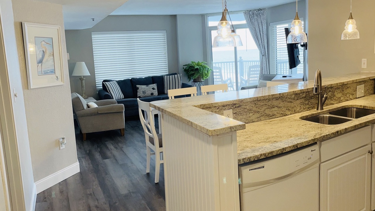 Our condo has just been updated with new flooring, lighting, dining room furniture, granite and new cabinets in the kitchen and bathrooms, 18” tile in the bathrooms and kitchen, and newly painted throughout. We would love to have you vacation in our home.