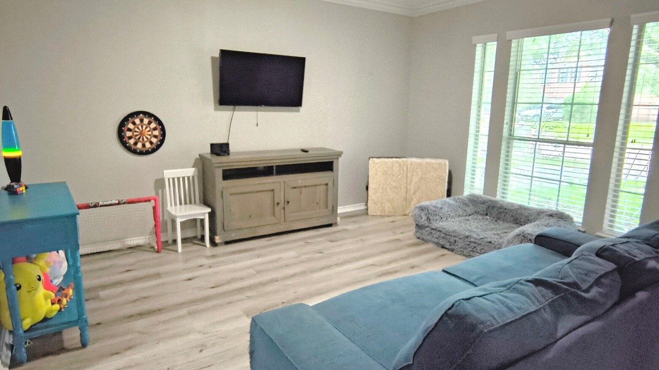 Your home away from home in the highly sought after Shadow Creek Ranch in Pearland, TX. Our beautiful 4 bedroom house features 2 king beds, 1 full bed, and 1 twin bed, perfect for families or groups of friends. Our house is fully furnished and provides everything you need, just bring your clothes. Our tropical backyard features a relaxing pool, awesome firepit, grill, picnic table, a fridge for outdoor meals and a magnolia tree to shade you from the texas heat. Don't forget your fur babies! We have beds, crates and dishes for their pampering too :)