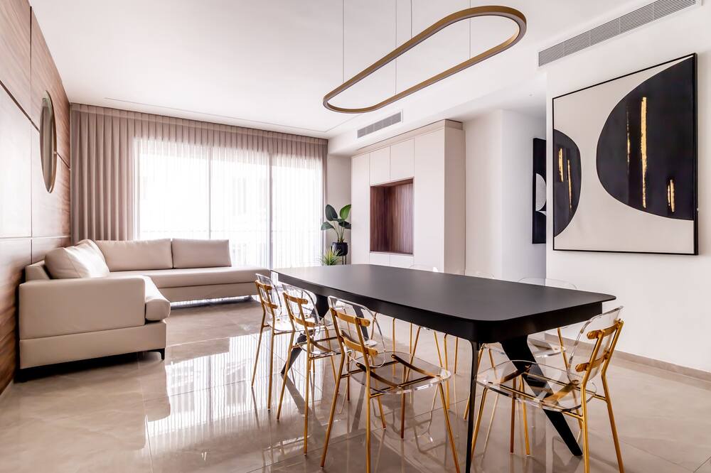 This apartment was customised by an interior designer to meet the needs of the owner's family and to accommodate national and international guests. The flat is decorated with a luxurious and natural ambience.