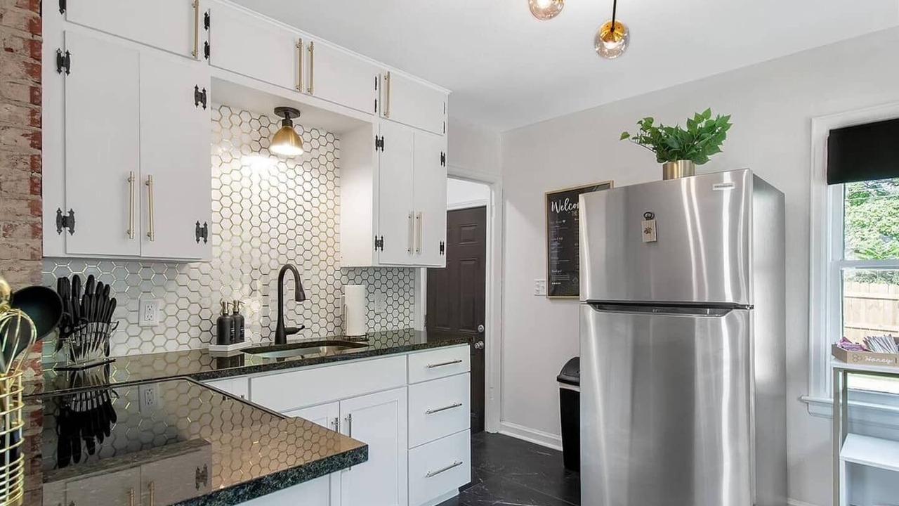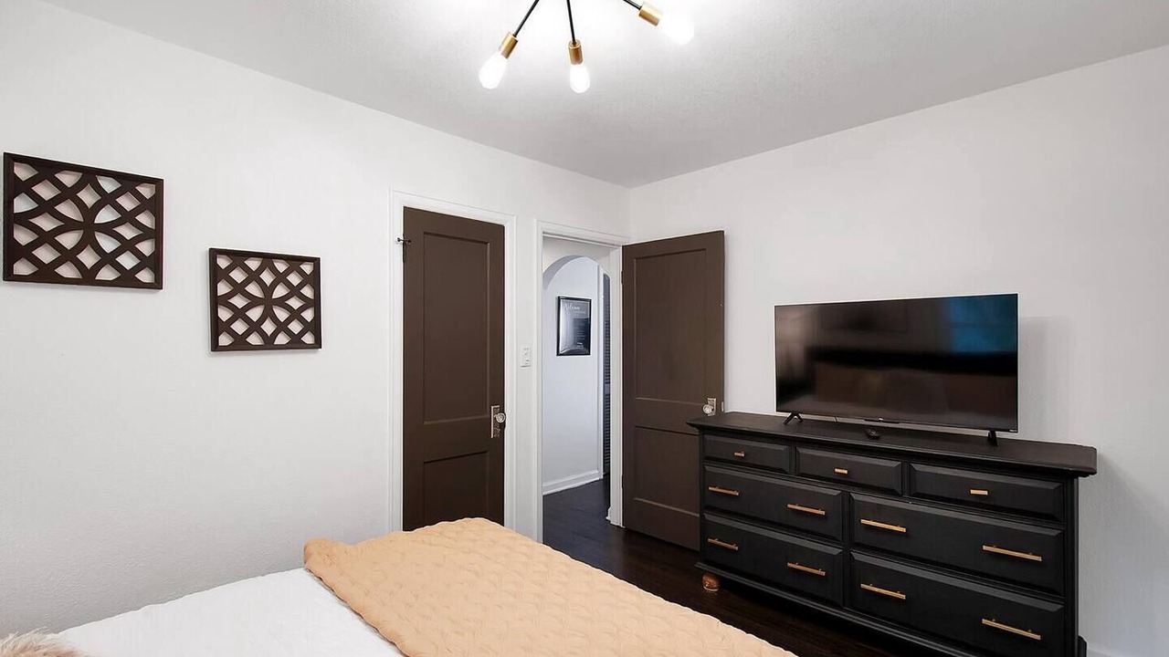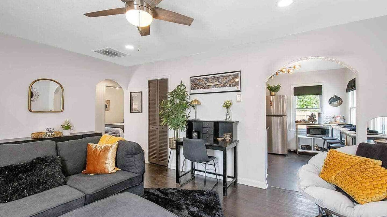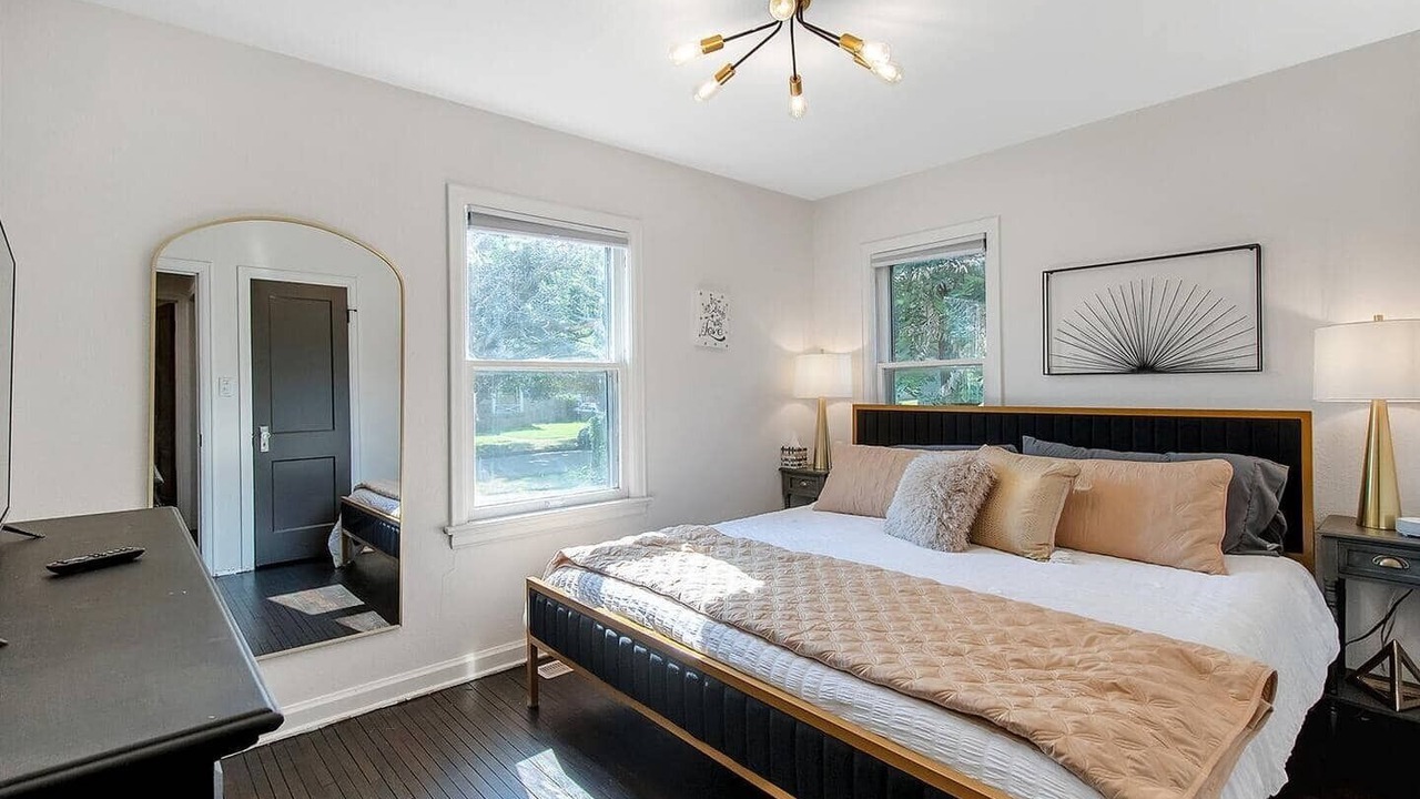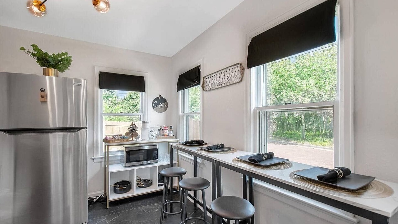 Experience a delightful stay at The Shocker Shack, a cozy cottage near Wichita State. This home offers stylish black and gold decor, two king-bed bedrooms with Smart TVs, and a private backyard with a gas grill. Located in a welcoming, multicultural neighborhood, it's the perfect spot for a comfortable and convenient getaway.