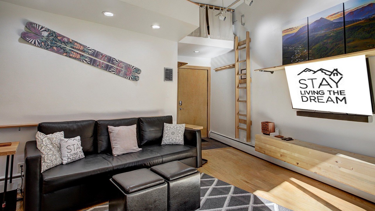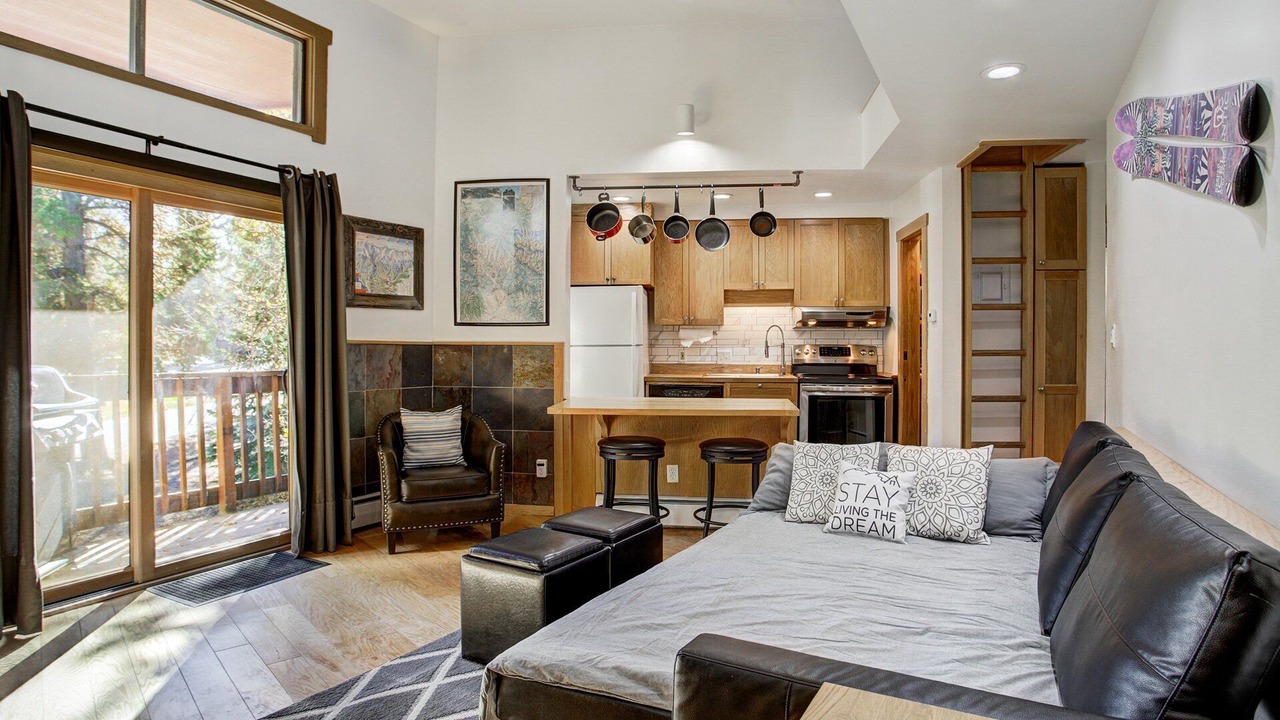 Breathe in the fresh mountain air from this cozy forest apartment. The residence features an open-plan living area, wood finishes, a balcony with a BBQ, and a bonus upper level loft sleeping space. A great spot for teens. Located on the bus route and one stop to town or the mountain, you can't find a better spot with a nice remodeled finish and upgraded new bathroom to enjoy your time! Super fast WiFi and a community coin laundry make this condo a great option for extended work from home stays as well! Two parking passes are included too! Sleep well on 3 new memory foam queen mattresses! This is a great place for 3 couples or a small family. StayLTD manages several condos, some right across the street! So if you have some other friends coming to visit or staying the same dates, just let us know we can take care of the whole crew!