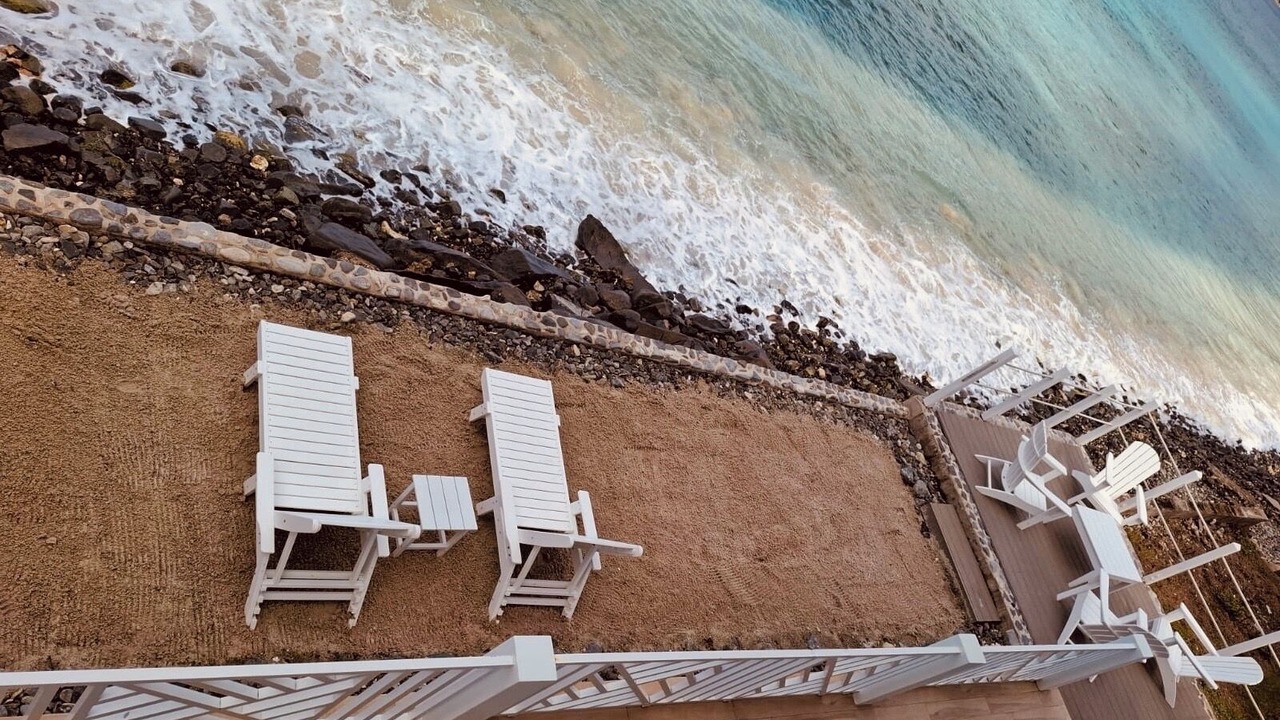 Apple Tide is on the ground floor - it has the same (slightly larger) terrace as High Tide & Spring Tide, but also has a private (but not secluded) raised beach area and a sun deck right above the sea. The quoted rate is for two person occupancy, and there is a modest surcharge for a third and fourth person. Given that the condos are often rented by two persons this seemed a better way to deal with the rate because VRBO does not allow both a two person, and a four person rate to be quoted.