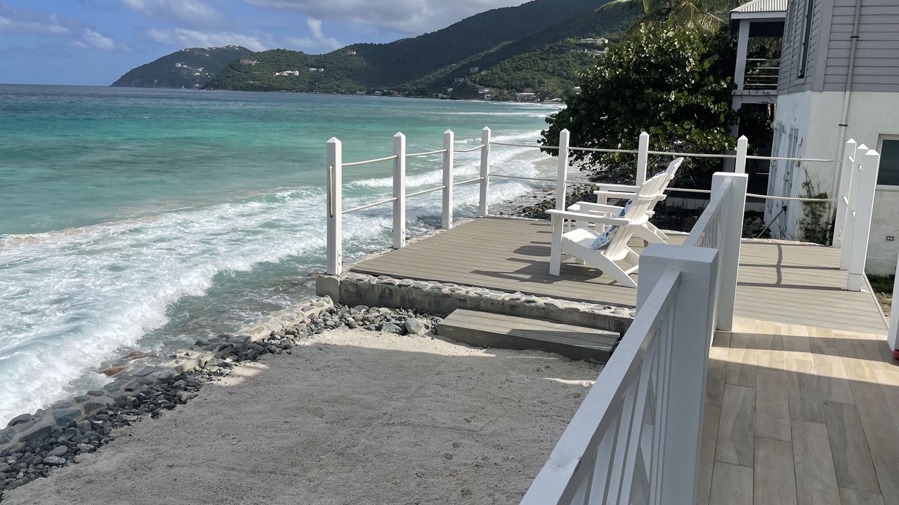You will be delighted by the stunning sea views from the terraces - which are less than 10 feet from the water. You can see out to Jost Van Dyke and along the North Shore of Tortola, and watch the surfers and the sea life. The location is perfect for surfers as the Apple Bay reef provides good surfing - in particular from November to April when the northern swells roll in. All year round swimming is beautiful at Smugglers Cove, and, depending on the sea conditions, you can swim with the surfers at Little Apple Bay and Apple Bay. Surf board hire can be arranged with www.bviwatertoys.com who are in Sopers Hole.