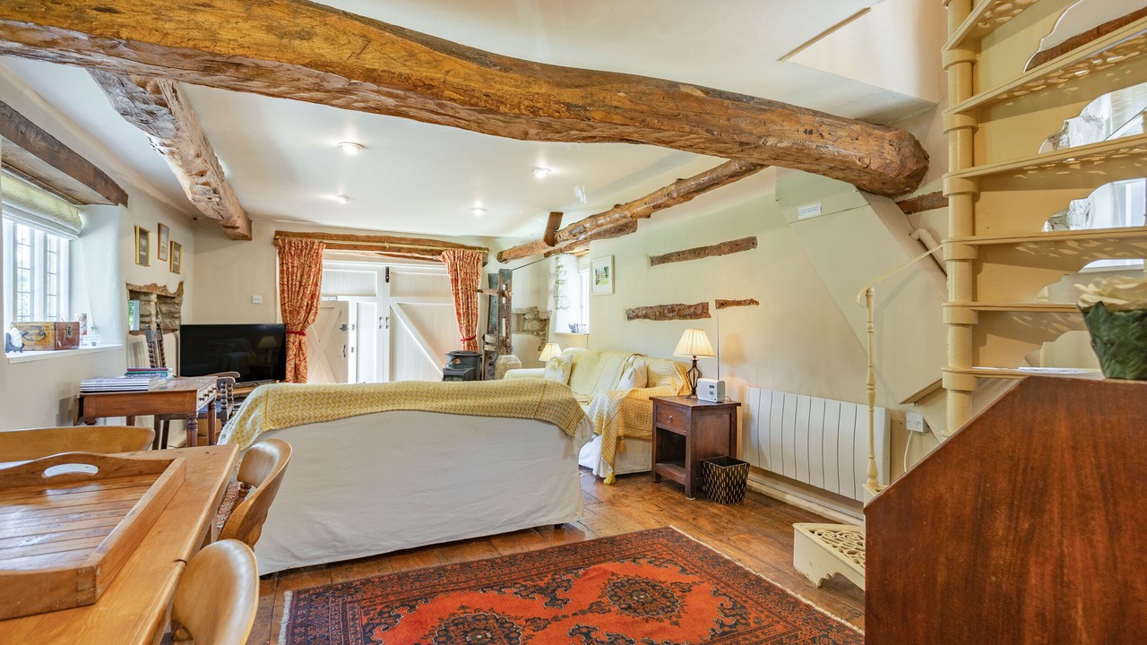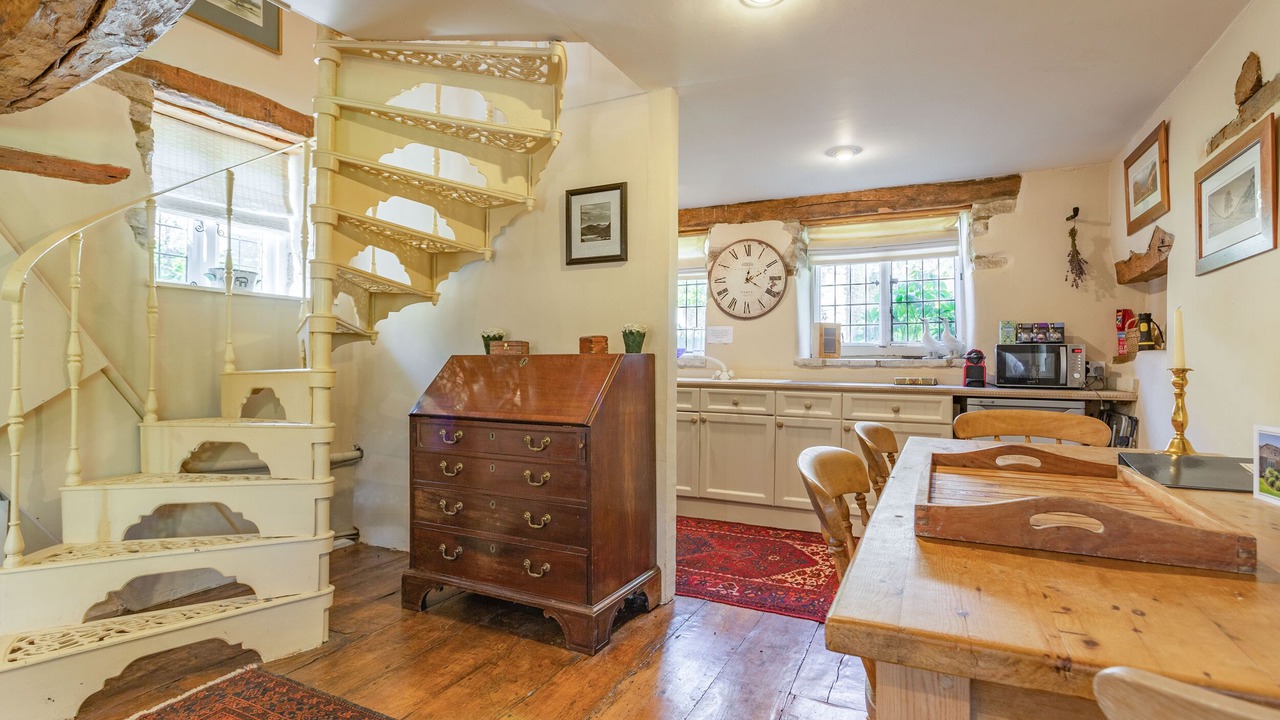 Amenities: Electric central heating. Electric oven and hob, microwave, Nespresso coffee machine, fridge, TV with Sky, DVD, WiFi, selection of books, games and DVDs. Fuel and power inc. in rent. Bed linen and towels inc. in rent. Off road parking for 2 cars approximately 200 metres from the property behind the village hall. Lockable bike storage. Lawned garden with patio, furniture and BBQ. Sorry, no pets and no smoking on premises. Please note: property has a cast iron, open tread spiral staircase and may not be suitable for young children or anyone with limited mobility. Shop 4 miles, pub 1 mile.
