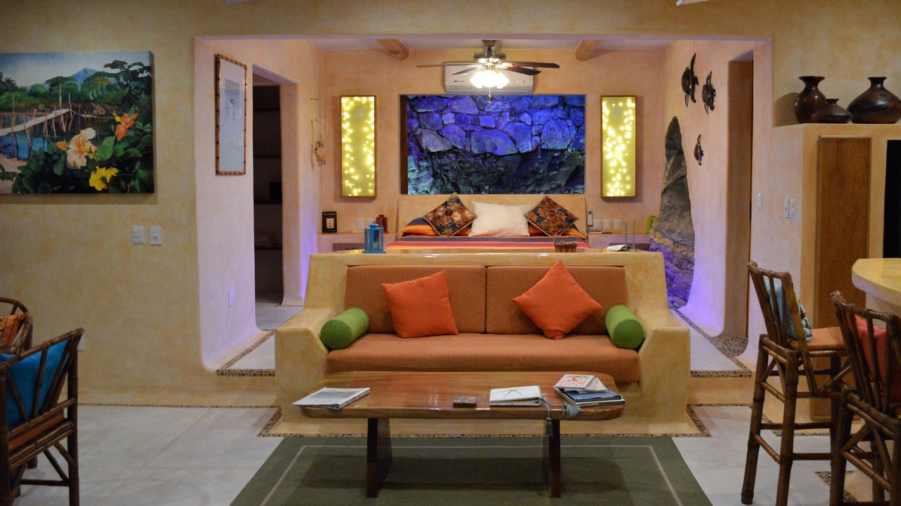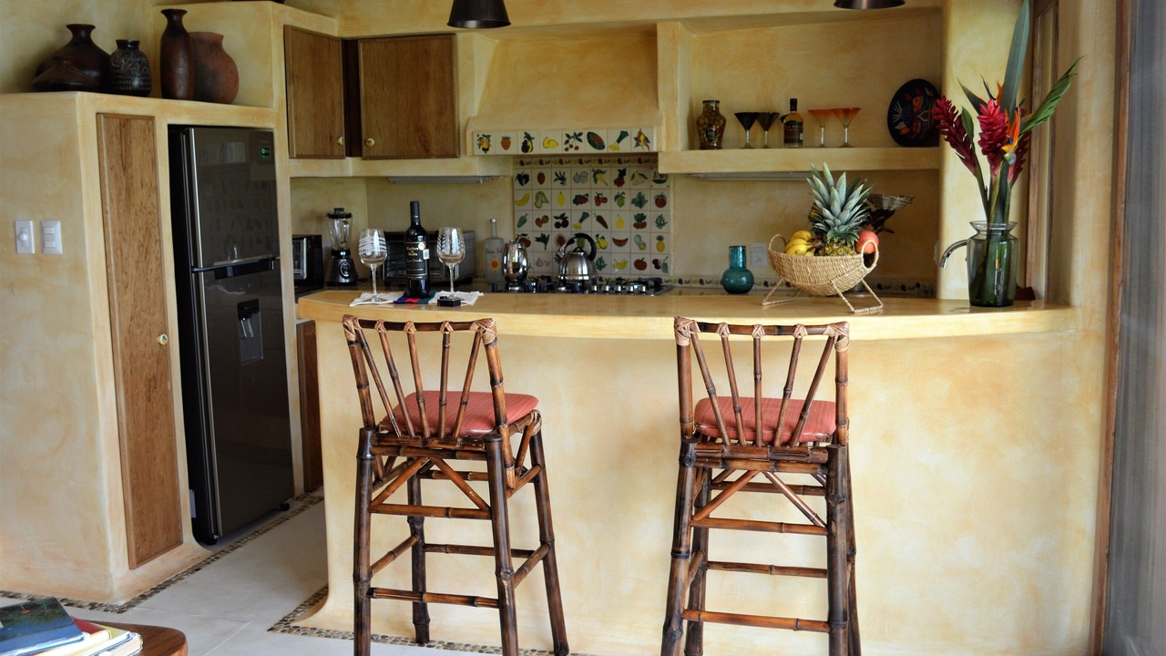 Nestled in the hill, two stories up, "El Mango" is surrounded by lush gardens and tropical fruit trees. Yes, that's a mango tree draped over your balcony.