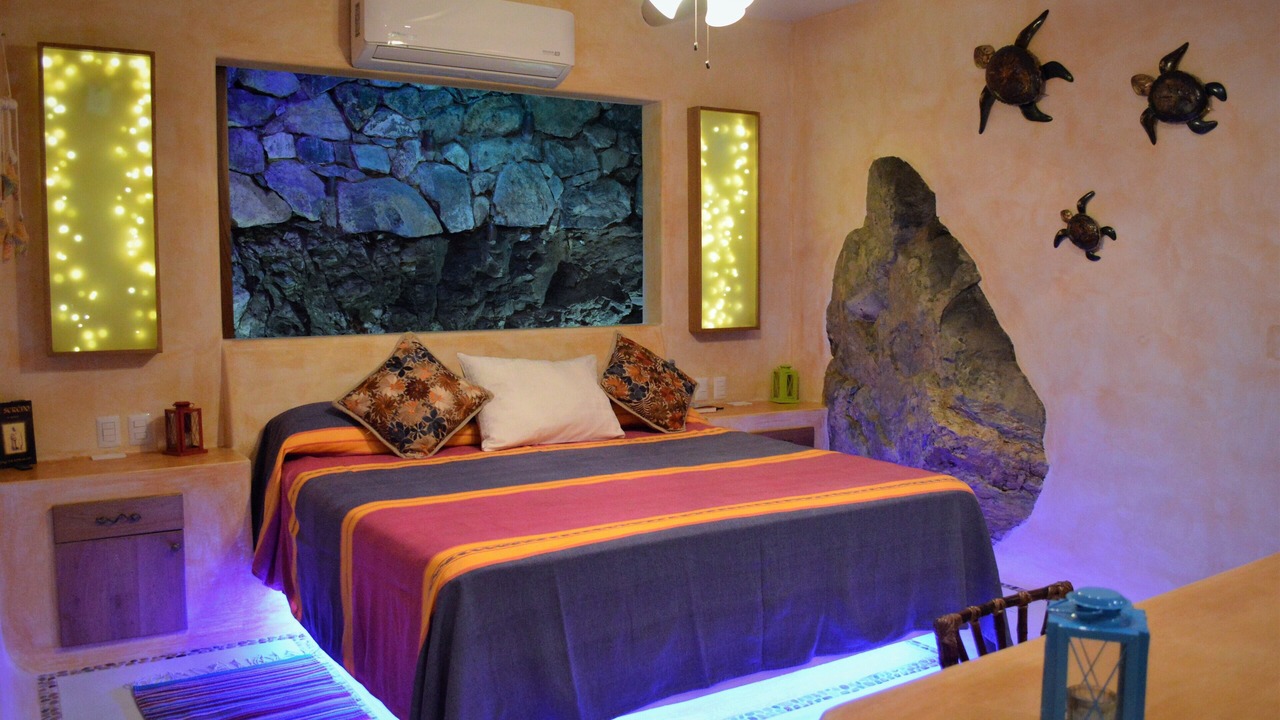Casa Sol Bungalow "El Mango" is a stunning casita with total privacy and spectacular views of the Bay of Zihuatanejo and the Pacific. Perched high above La Ropa and Las Gatas beaches in an exclusive area, it is the idyllic setting to spend your vacation.