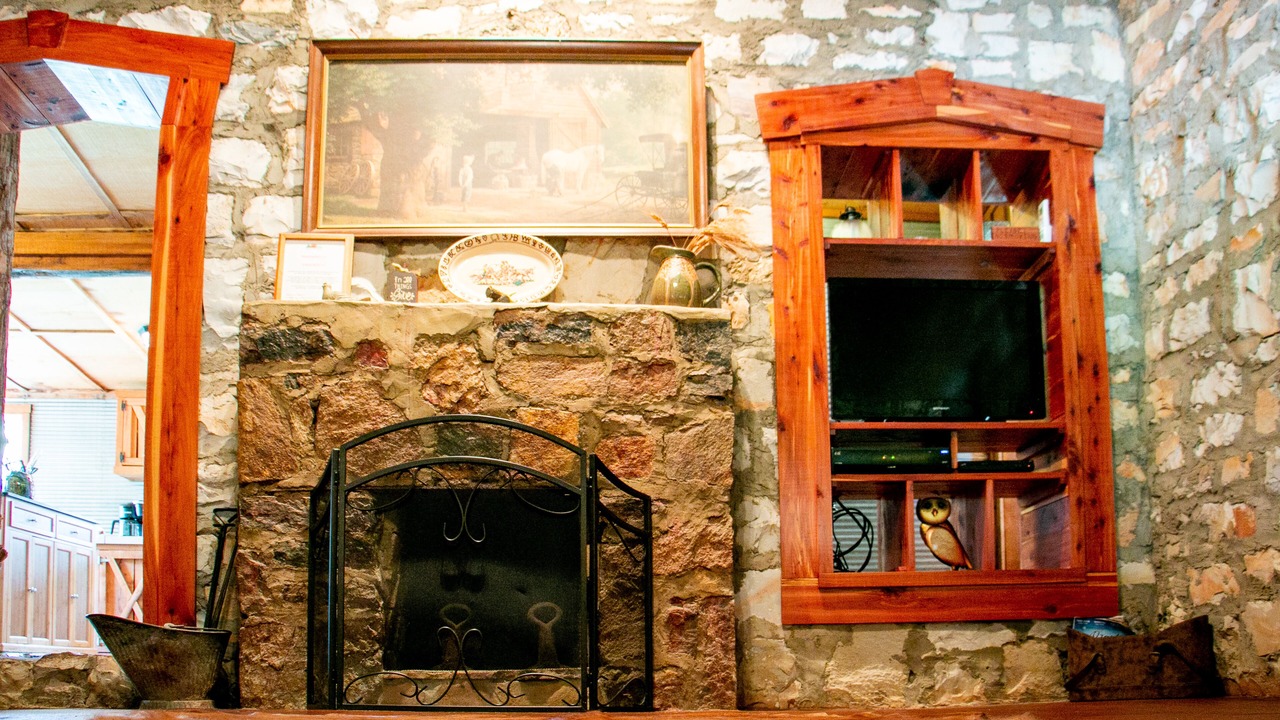 The Victory Suite den is all stone with a cathedral ceiling, a wood burning fireplace & leather furniture. Includes separate full kitchen and king bedroom adjoining the bath with clawfooted double slipper whirlpool tub. TV’s are in the bedroom and den. Nice view of the valley from the covered porch on back patio. This suite is named after our first big gray appaloosa with a lot of attitude!