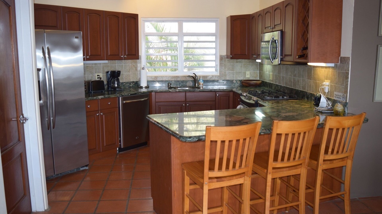 Retreat to one of two king master suites, each with its own ensuite full bath and captivating ocean and pool views. Alternatively, indulge in the comfort of the queen bedroom with equally mesmerizing vistas, or the twin bedroom offering its own panoramic ocean view.