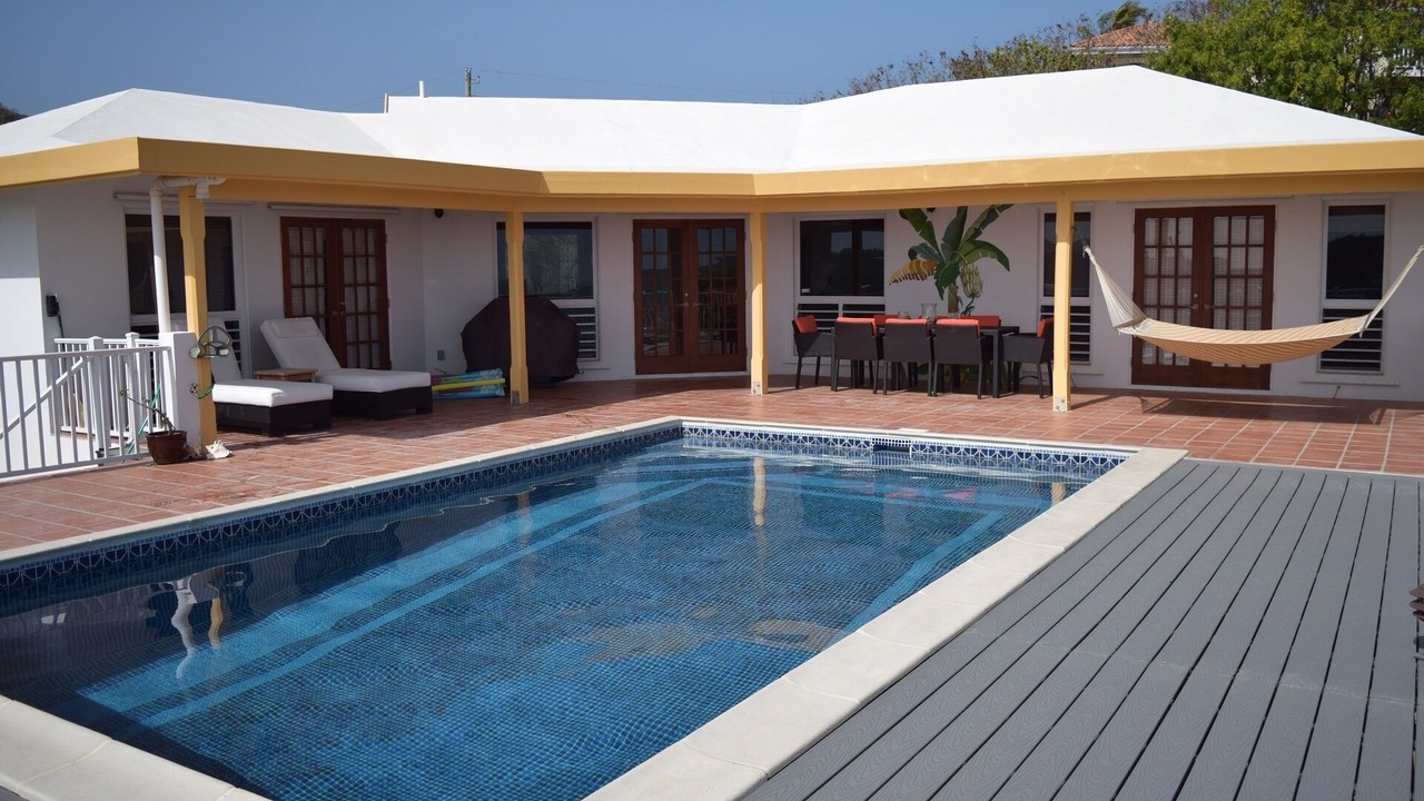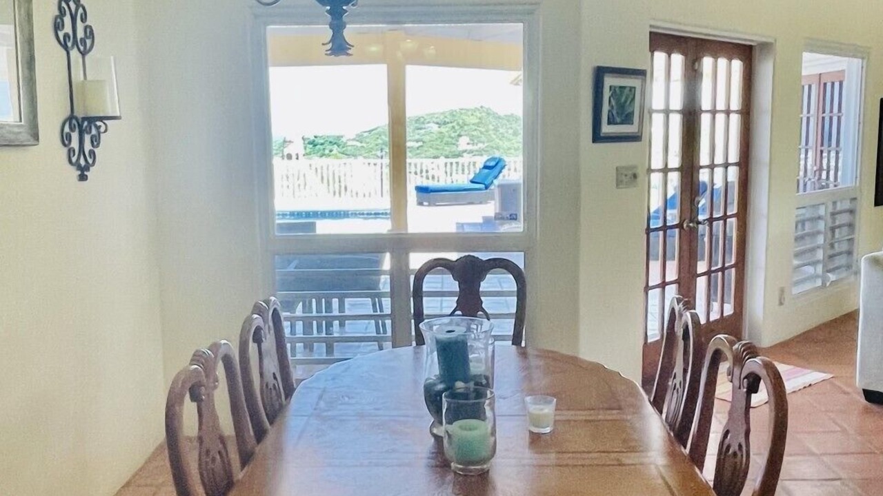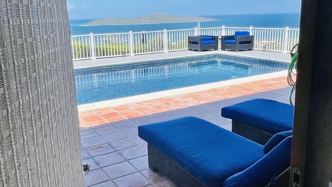 Immerse yourself in the enchanting vistas of Buck Island by day and the captivating spectacle of the Milky Way by night from the expansive pool deck. This fully furnished and stocked 4-bedroom, 3-full bath residence epitomizes luxury living, featuring a stunning tiled pool and spacious deck, complete with outdoor covered dining for eight.