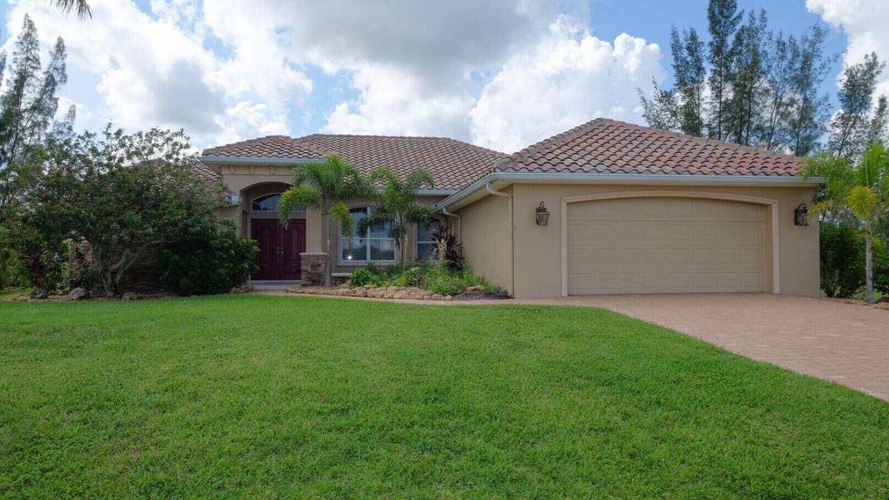 Beautiful and spacious gulf access Villa Cortona with over 2500 Sq Ft under air conditioning offers and open 4 bedroom, 3 bathroom floor plan which is perfect for those with a large family or those who simply love private spaces. This tropical, secluded hideaway is located at the end of a quiet street on oversized lot with a beautiful view of private canal. The large family room entrance is framed with an arched opening and stone columns.